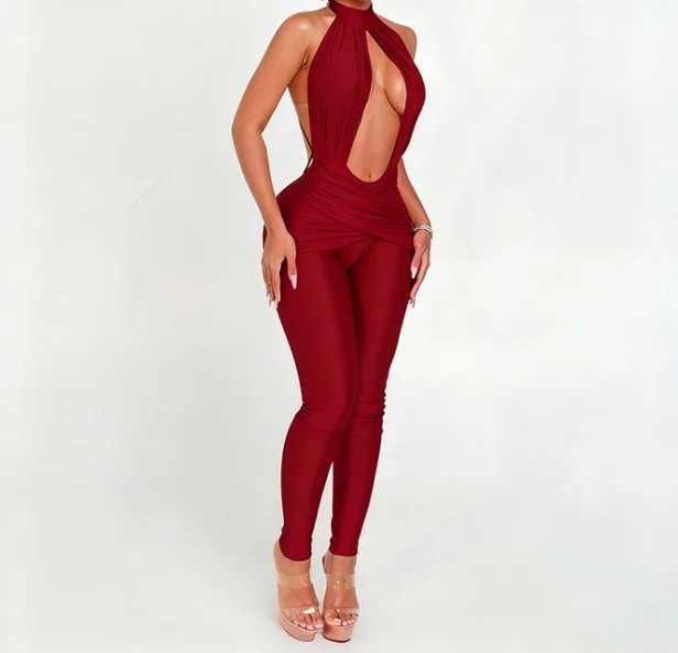 2025 New Arrivals Fashion Popular Backless Sexy Sleeveless One Piece Playsuit Jumpsuit