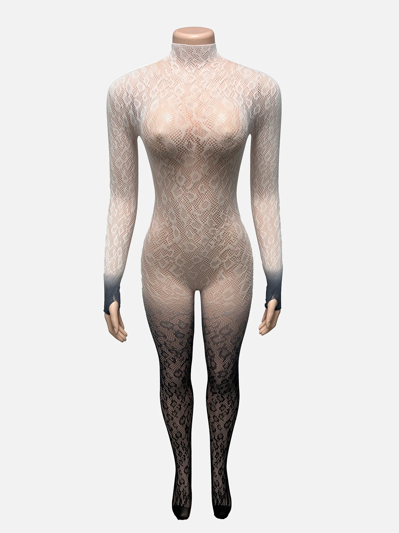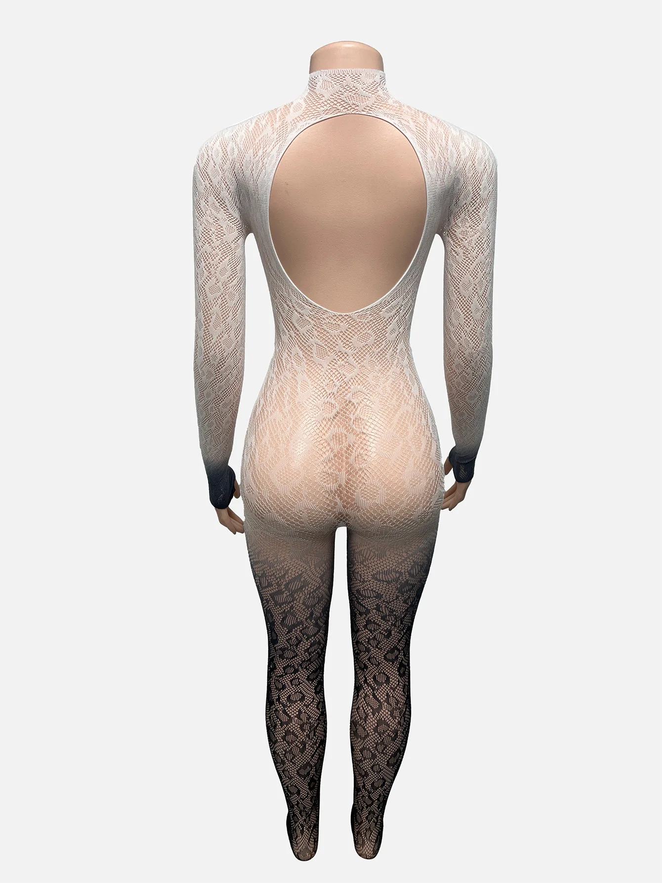 2025 Fashion Long Sleeve Mesh Hot Sexy Slim Fit Backless One Piece Playsuit Jumpsuit