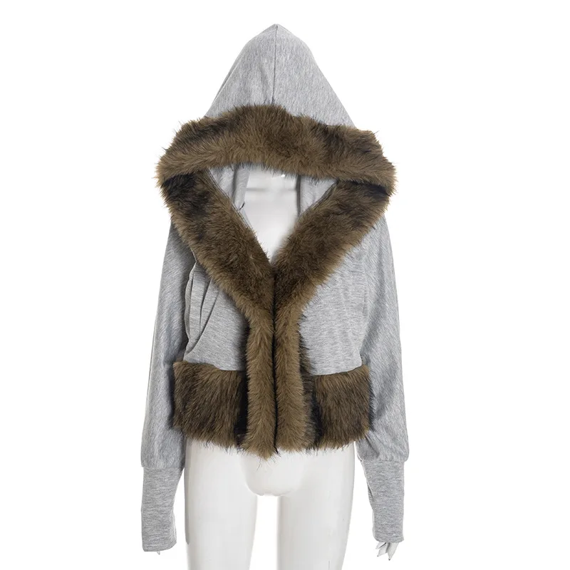 2025 Fall New Arrival Winter Fashion Plush Furs Hoodie Coats Women's Jackets