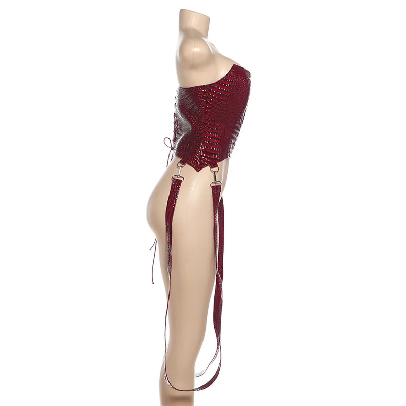 2025 Popular Hot Sexy Fashion Leather Sexy Girls Popular Lace up Women Tank Tops