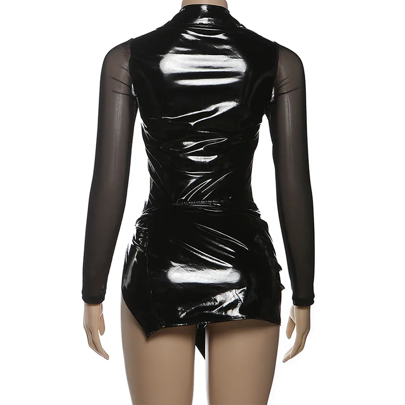 2025 New Popular Trendy Boutique Leather Pu Mesh Patchwork Women's Romper and Skirt Set