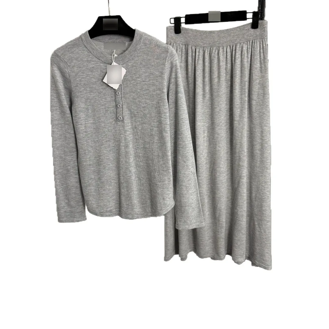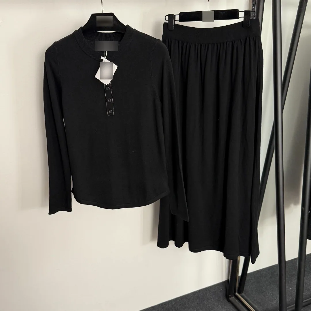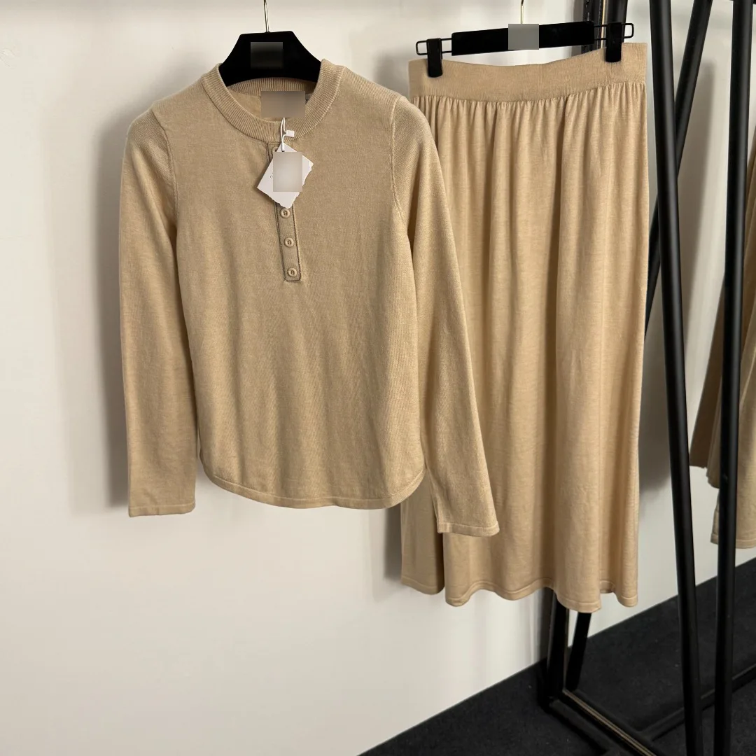 New Style Long-Sleeved Pullover Knit High-Waisted Knitted Skirt Solid Casual Autumn Collection Breathable Button Women's