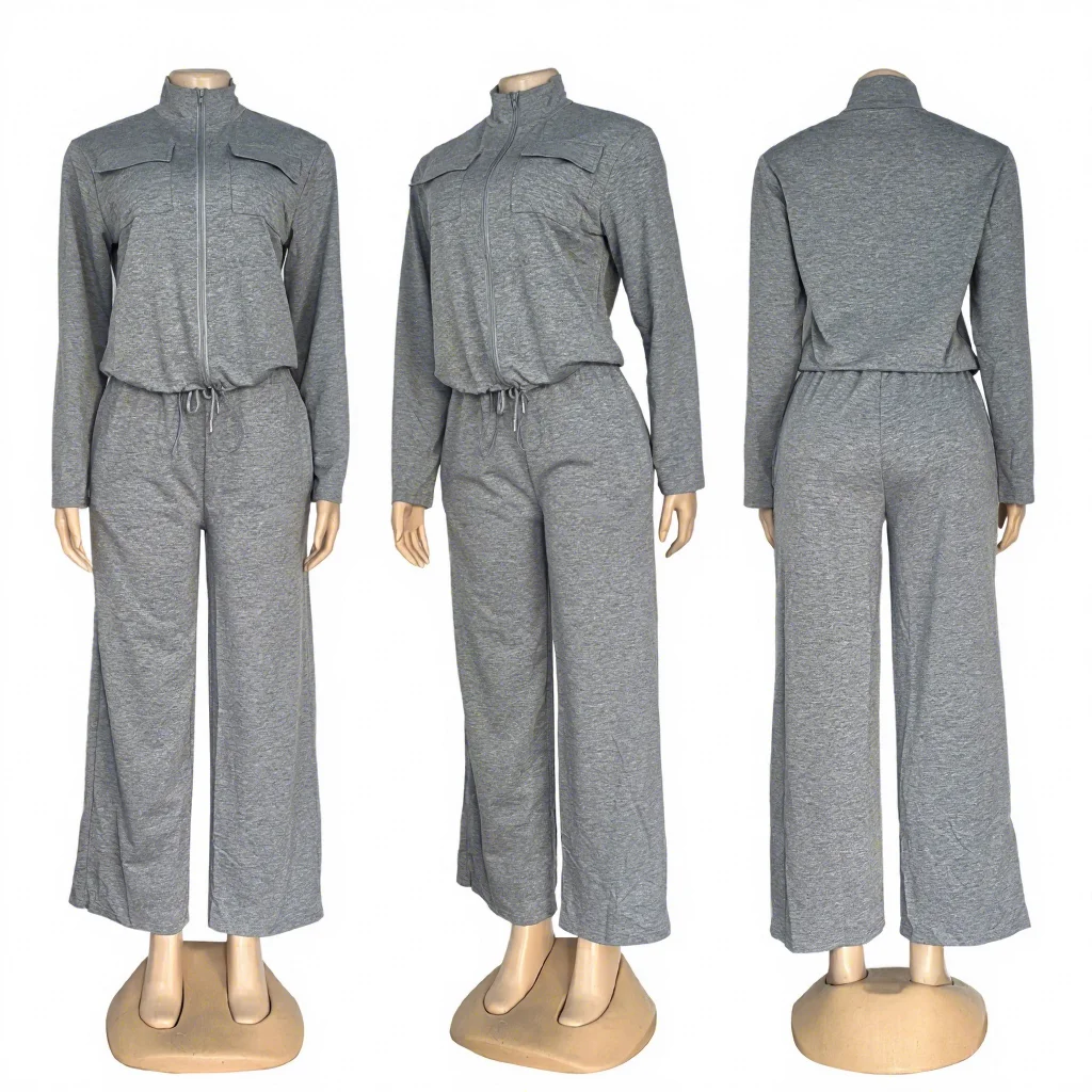 European American Women's Autumn Winter Clothing Set Popular Thread Embroider Embossed Long-Sleeved Pants Zipper Suit