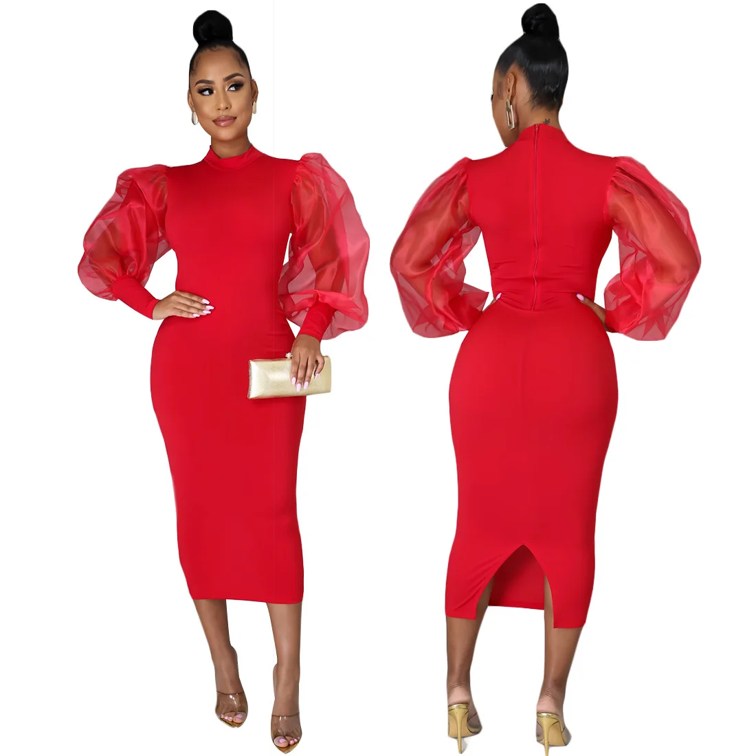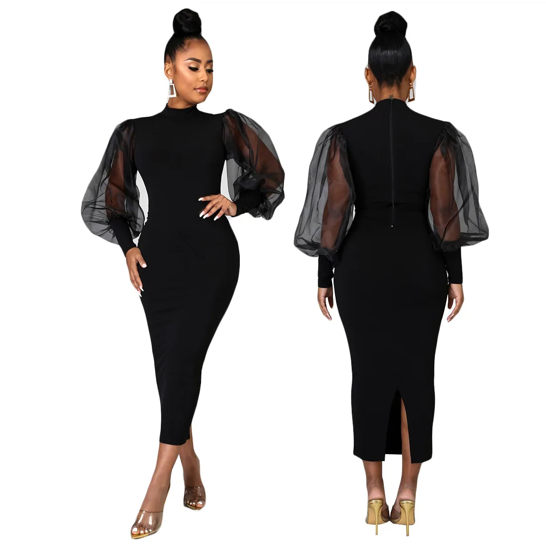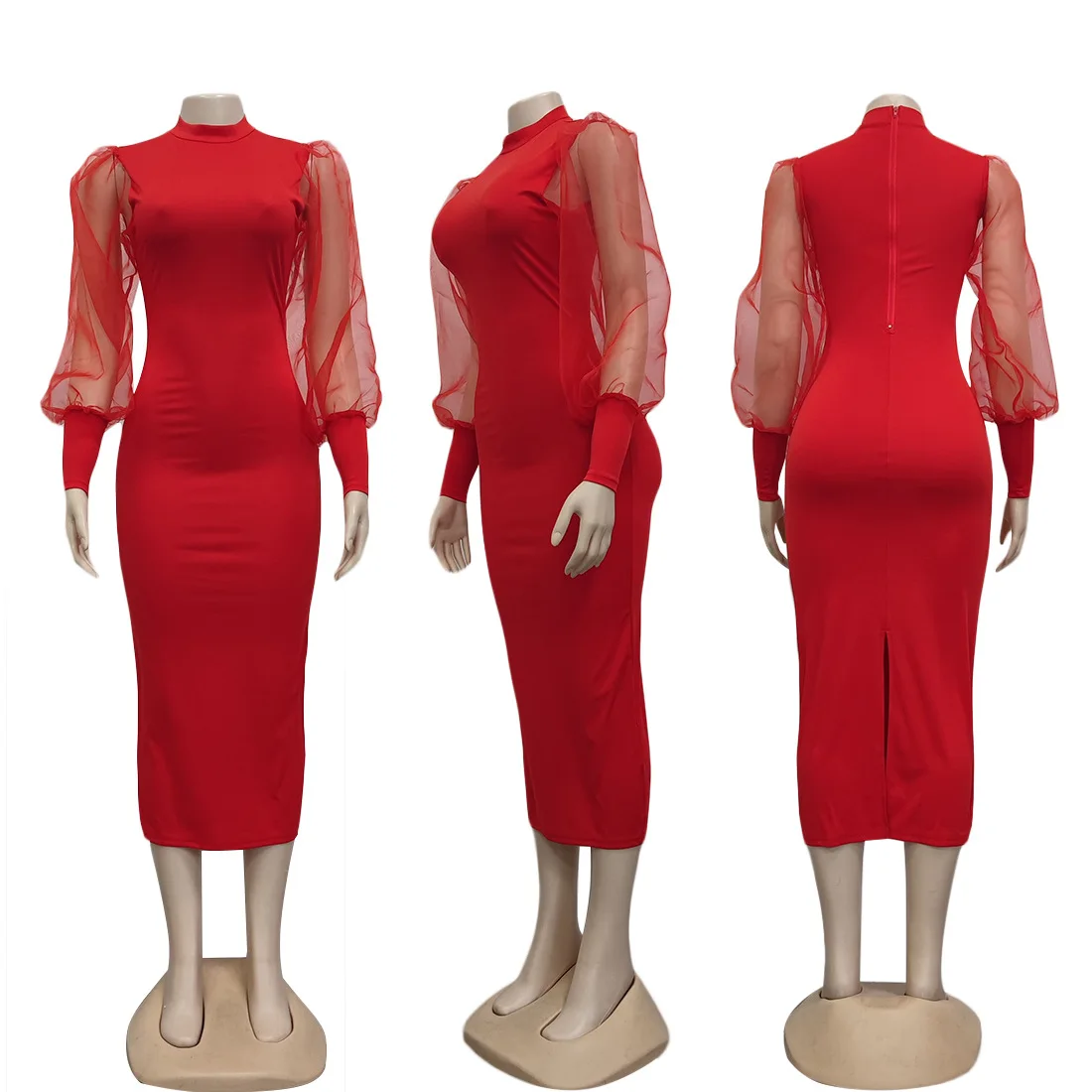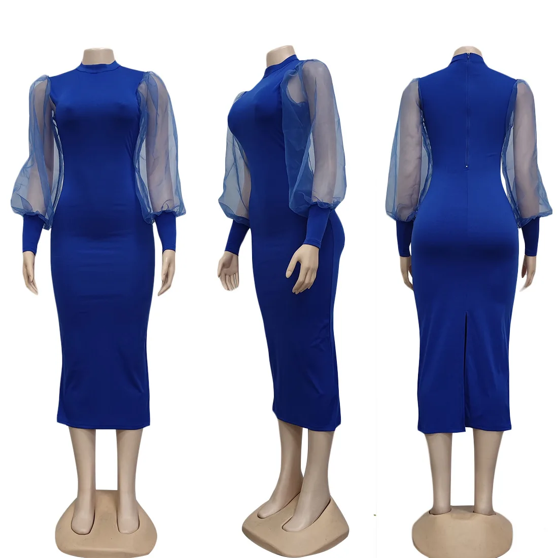 European American Women's Fashion A-Line Mini Dress Worsted Solid See-Through Lantern Sleeves Hot Sale Promotion Casual Spring 3