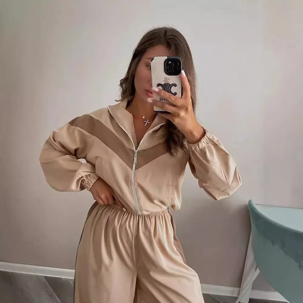 Women's Vintage Autumn Fashionable Casual Sports Cardigan Pants Set European American Long-Sleeved Street Outfit Solid 2 1