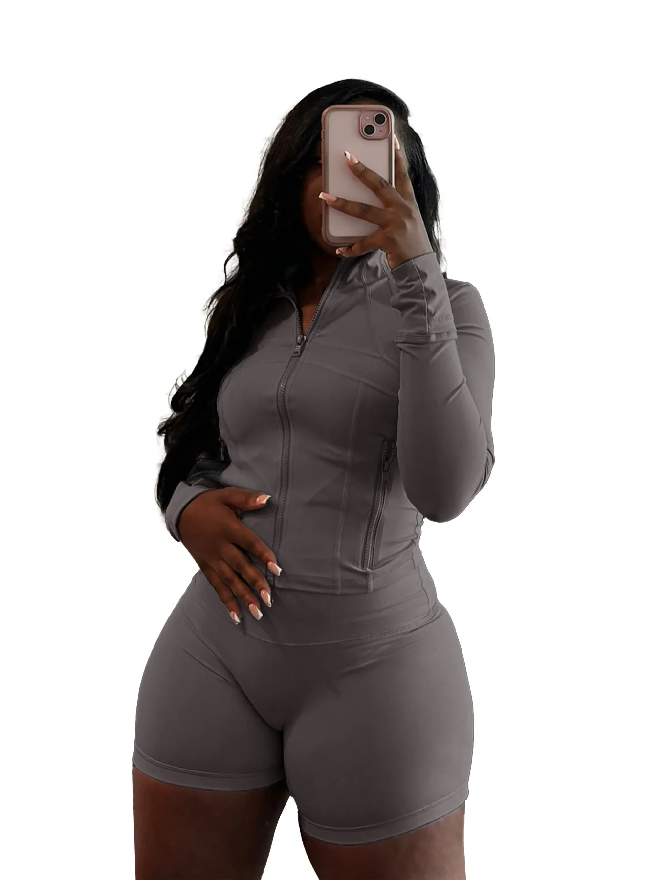 Hot-Selling New European American Sports Casual Two-Piece Set Sexy Solid Pattern Long-Sleeve Tight Shorts