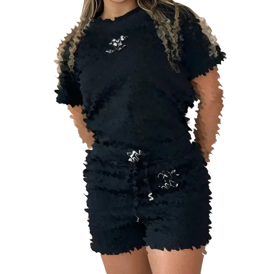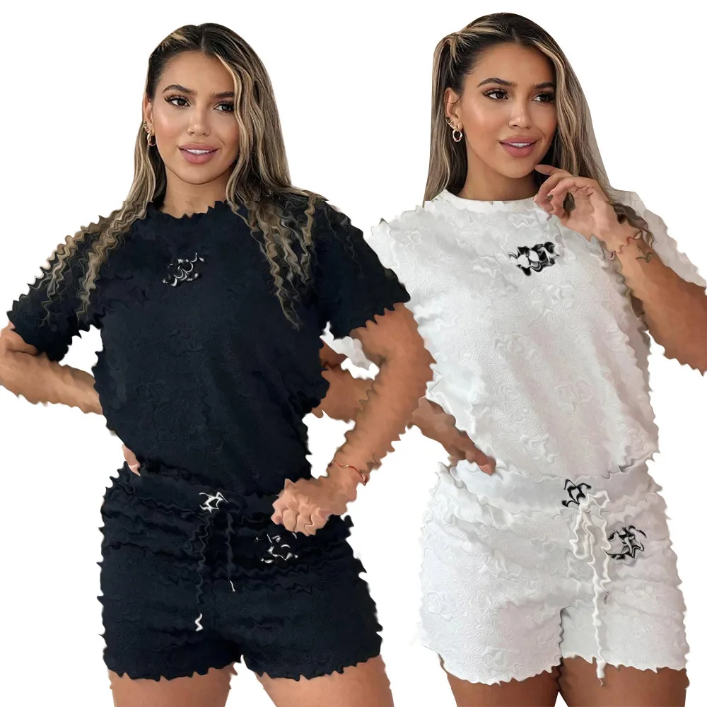 American Women's Casual Summer Breathable Polyester/Cotton Drawstring Two-Piece Shorts Set
