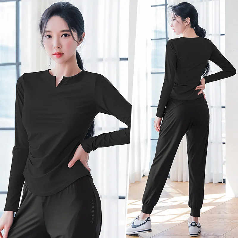 New High-Waisted Hip-Lifting Body-Shaping 2-Piece Fitness Wear Yoga Elastic Waistband Anti-Bacterial Spandex/Nylon Solid Color