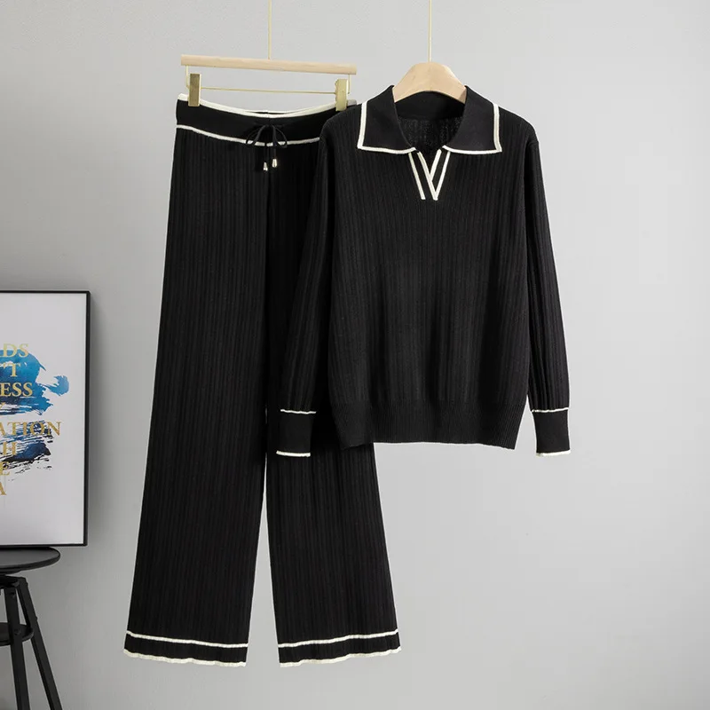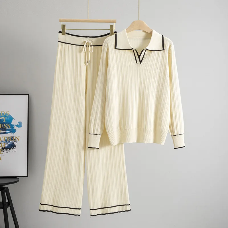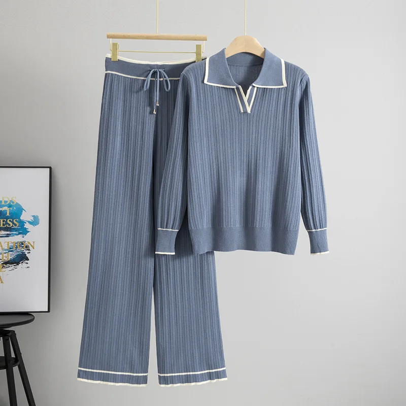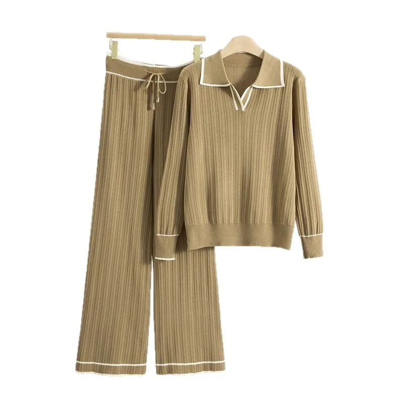 Cross-Border European Station Women's Two-Piece Set Autumn Casual Fashion Long-Sleeved Turn-down Collar Shirt Wool Loose Solid