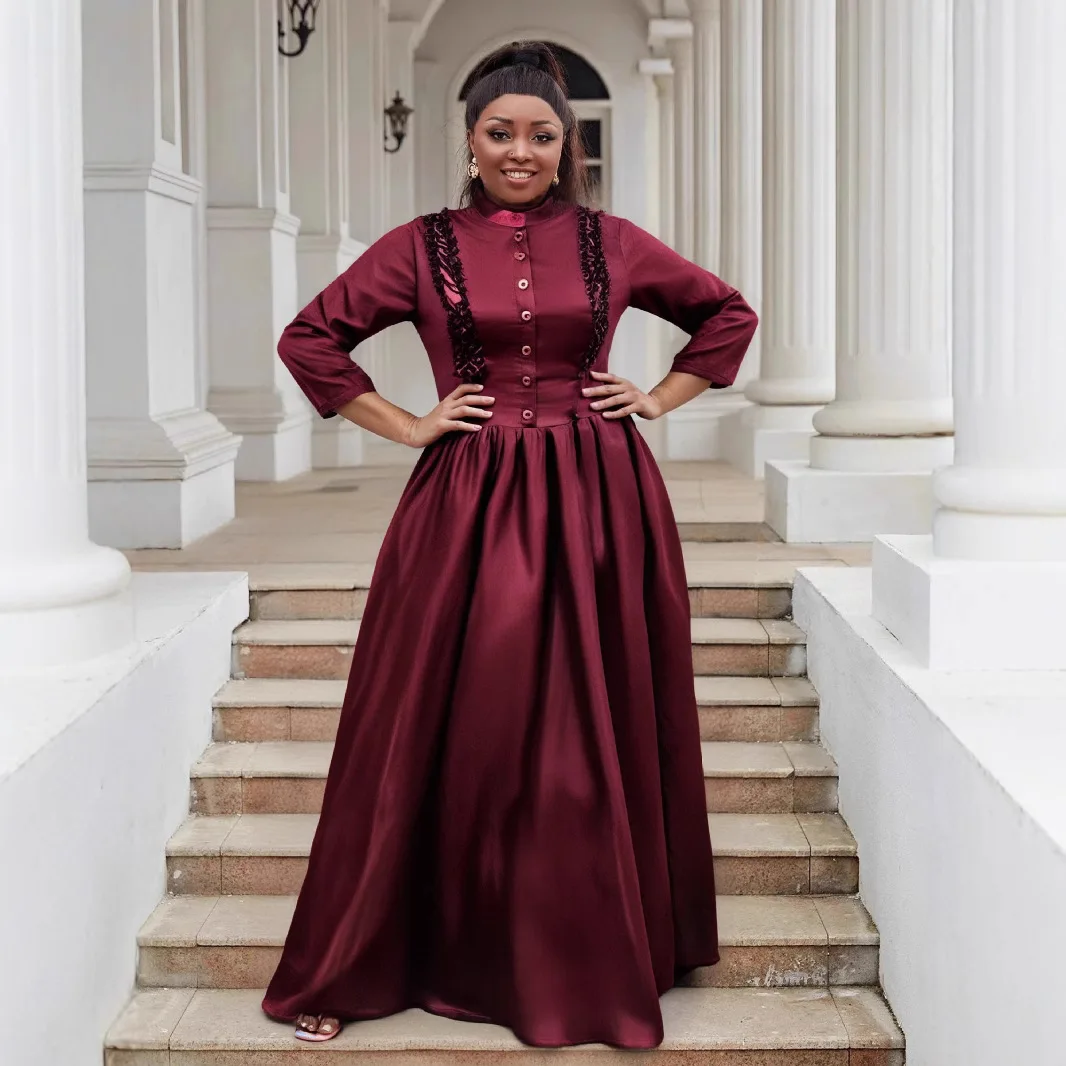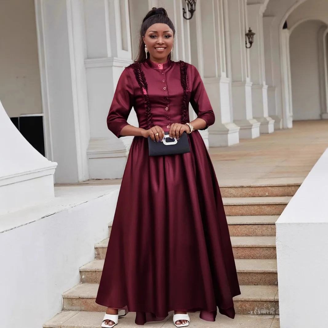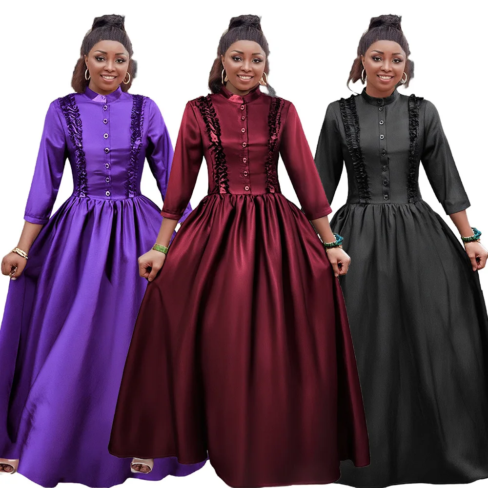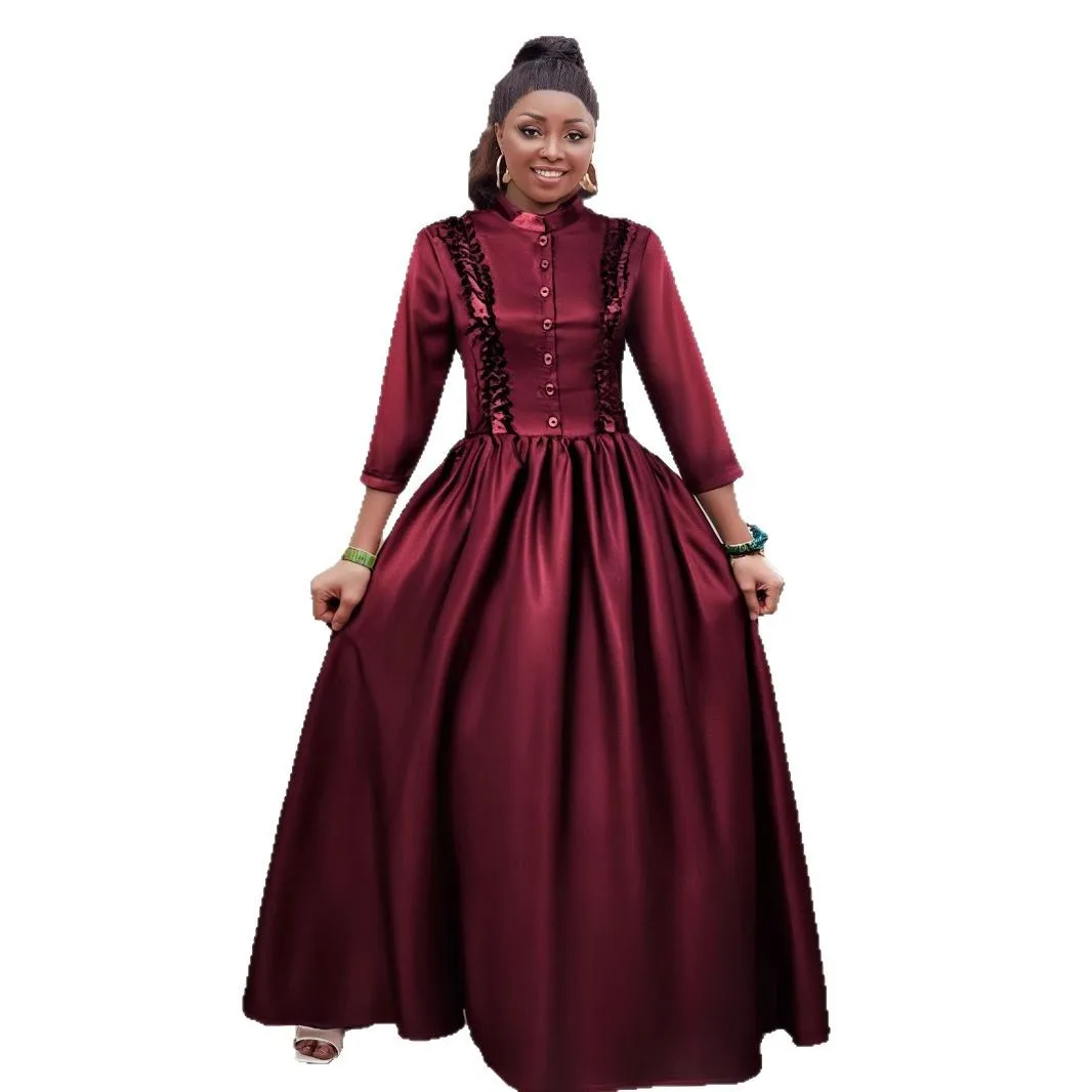Cross-Border New Style Feminine Half-High Collar Three-Quarter Sleeves Ruffled Pleated Long Maxi Halloween Dresses