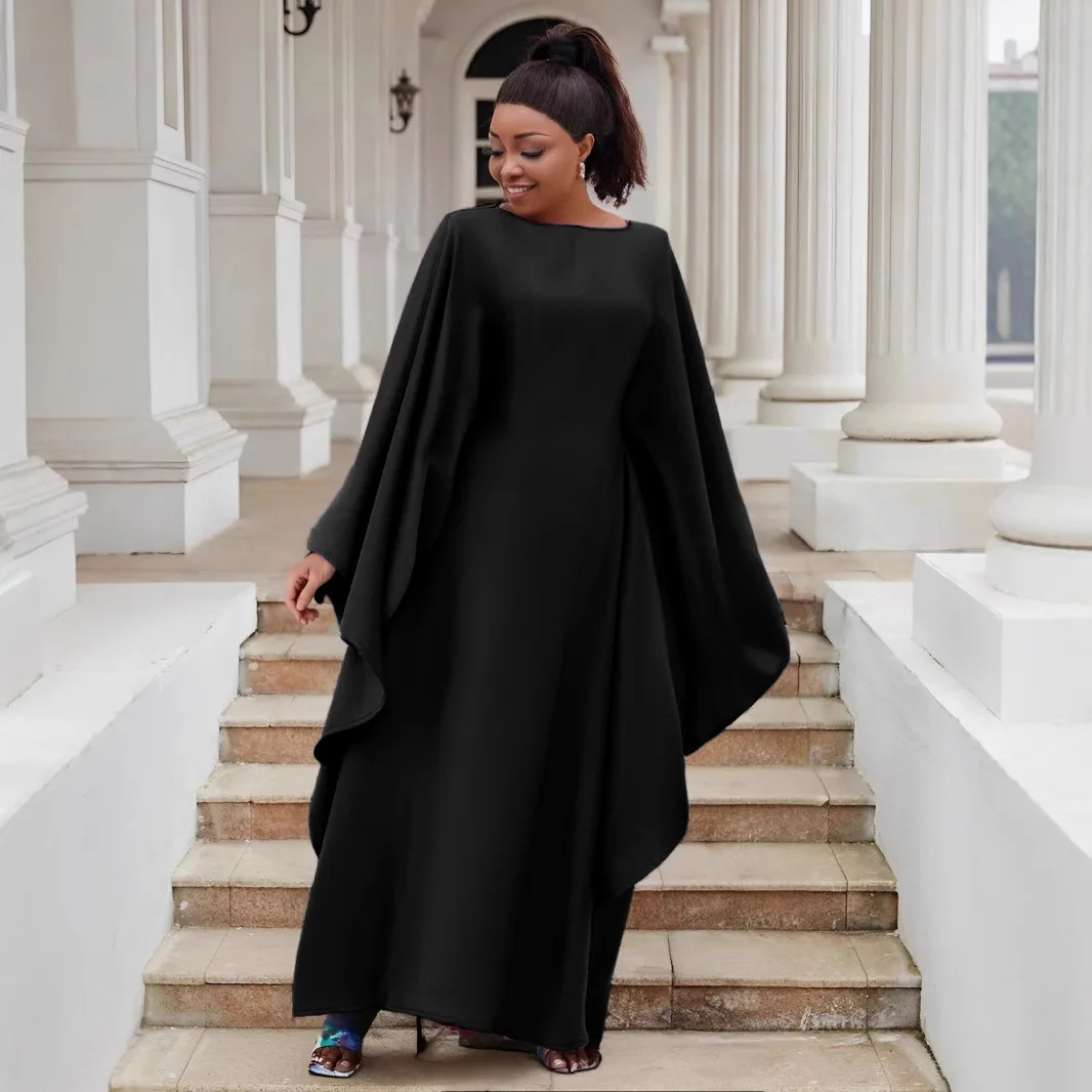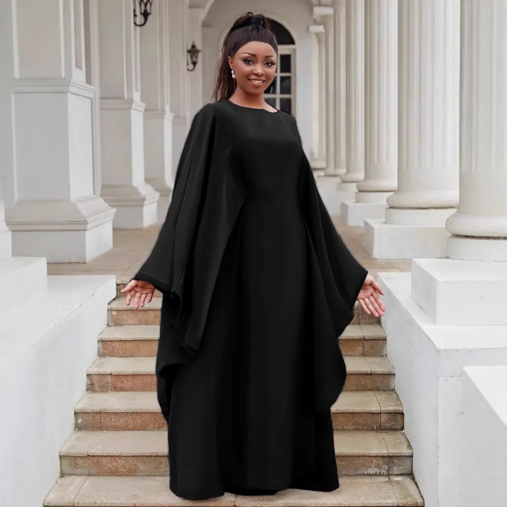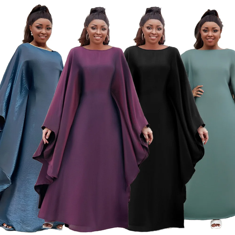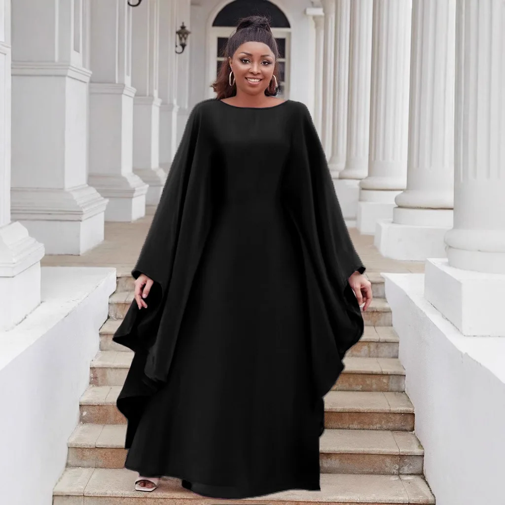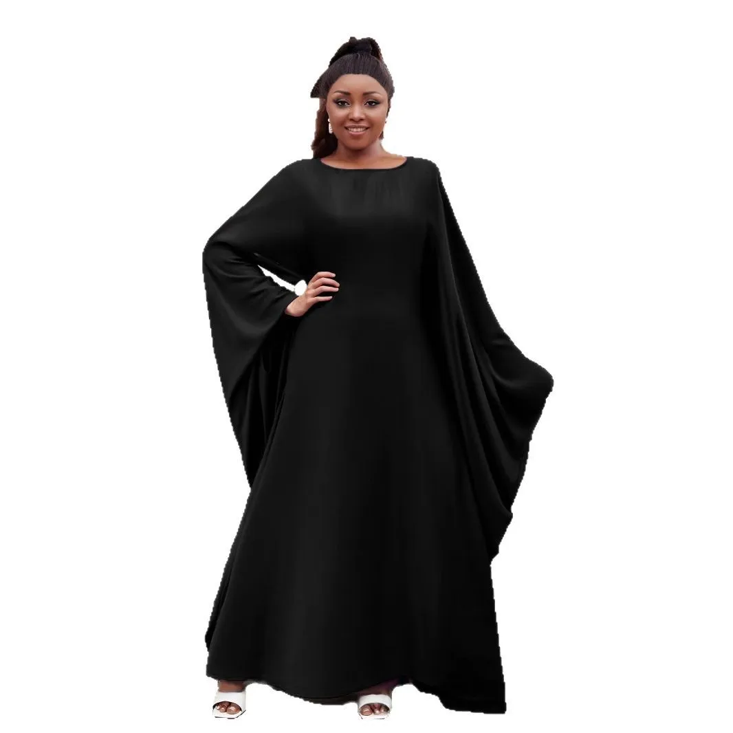 European American High-End Large Size Casual Feminine Bat Dress One-Line Collar Long Sleeve Polyester Long Skirt Cross-Border