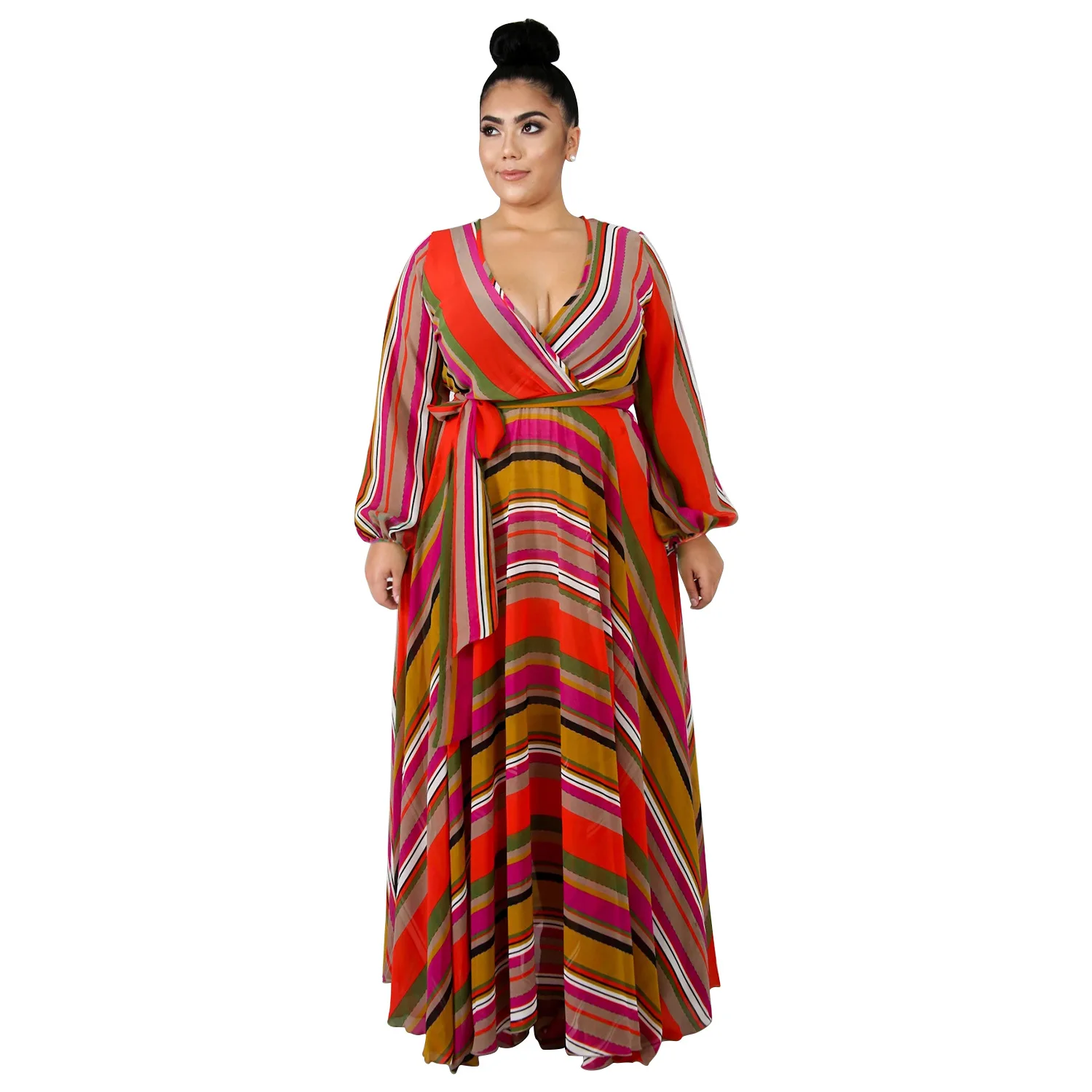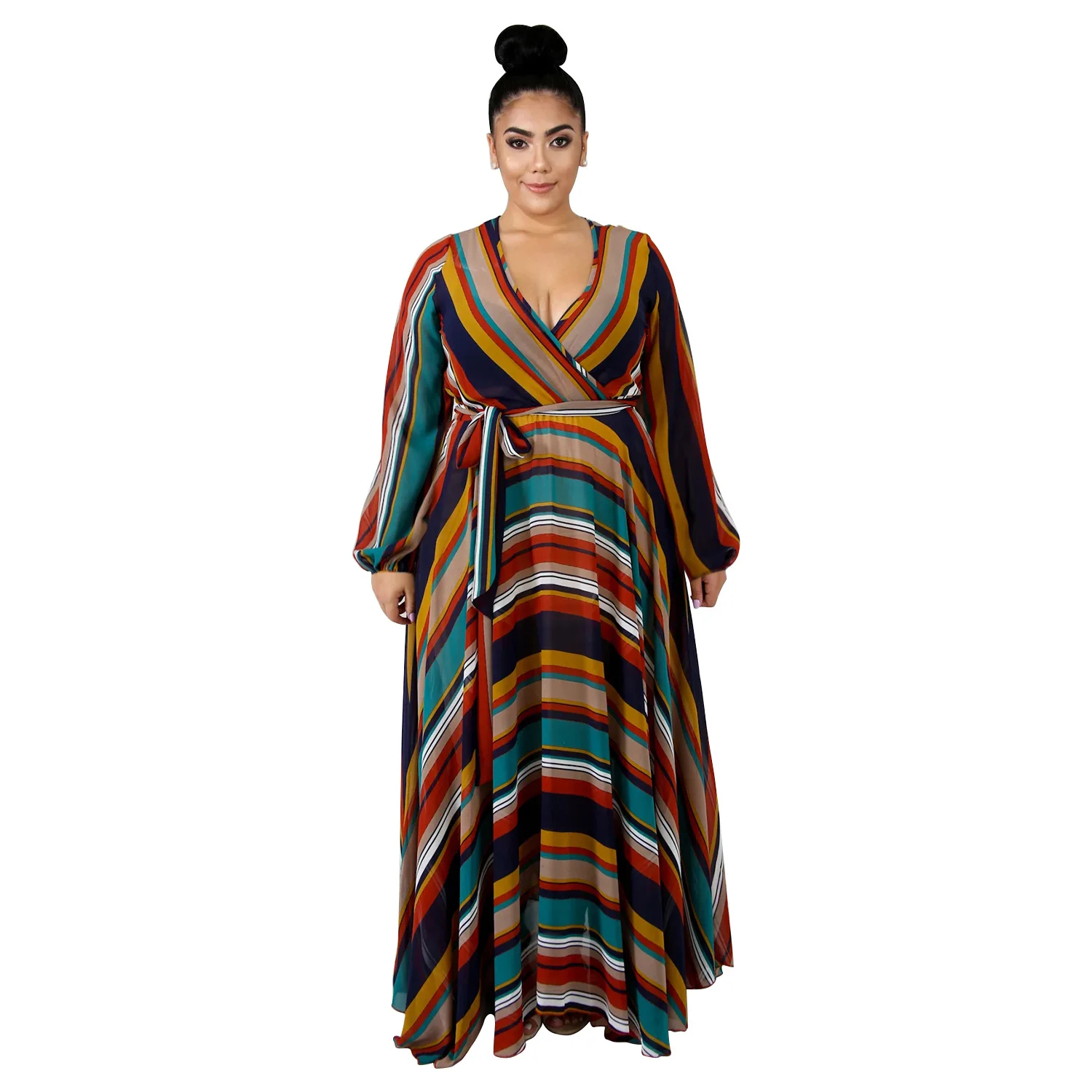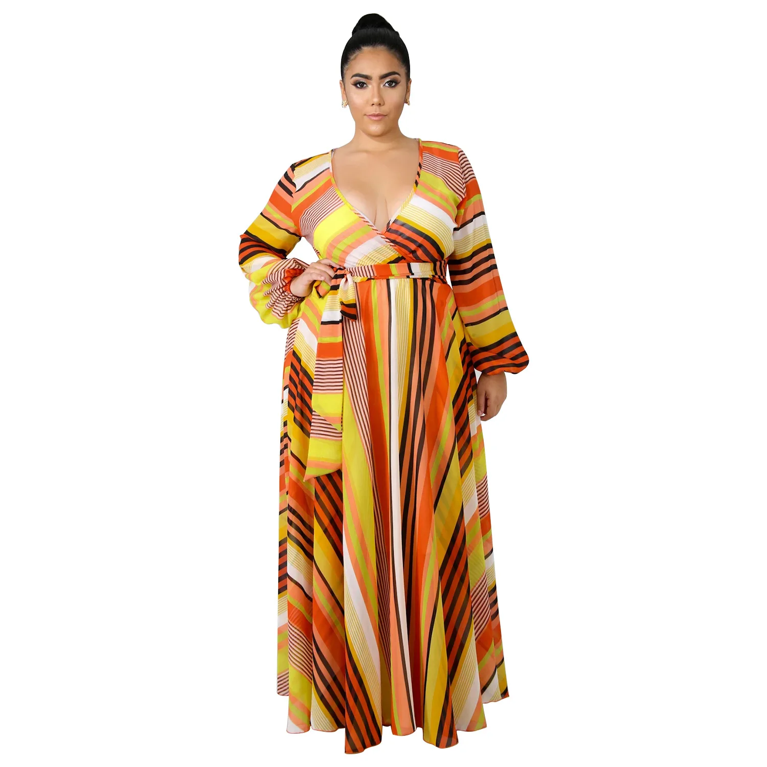 European American Plus Size Fashion New V-Neck Floral Beach Chiffon Floor-Length Large Flared Skirt Front Digital Printing