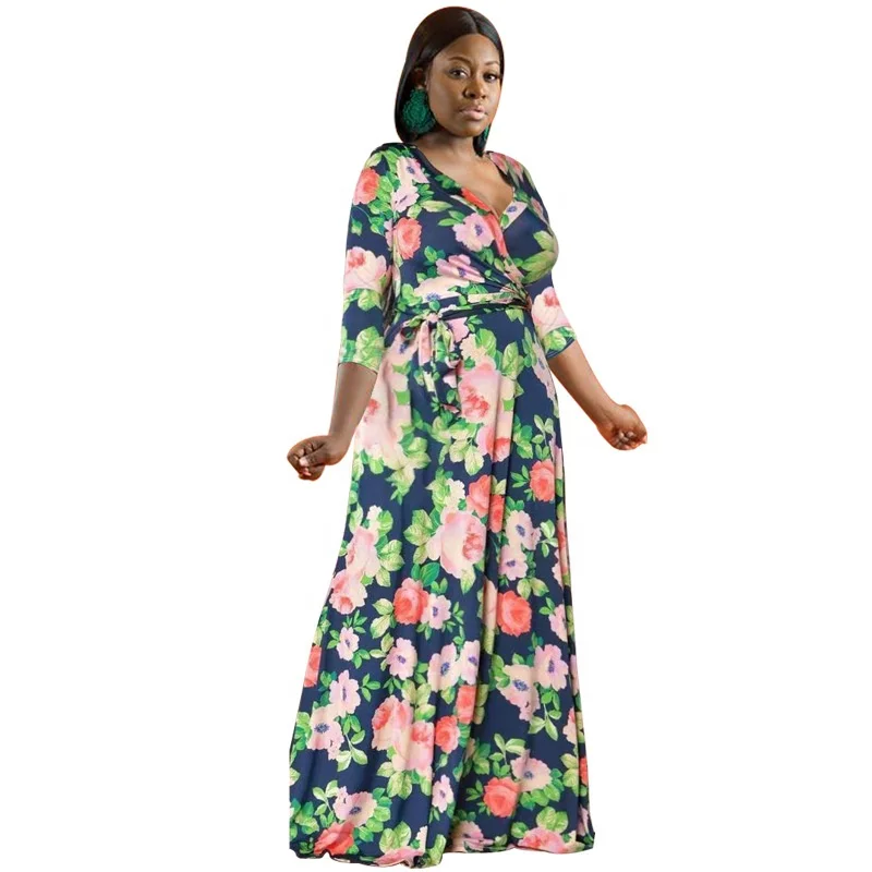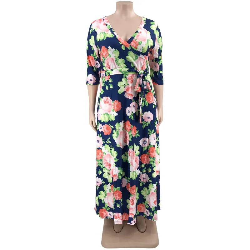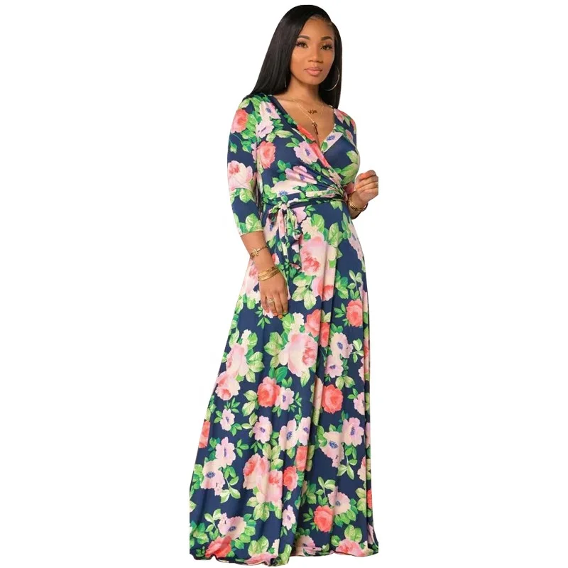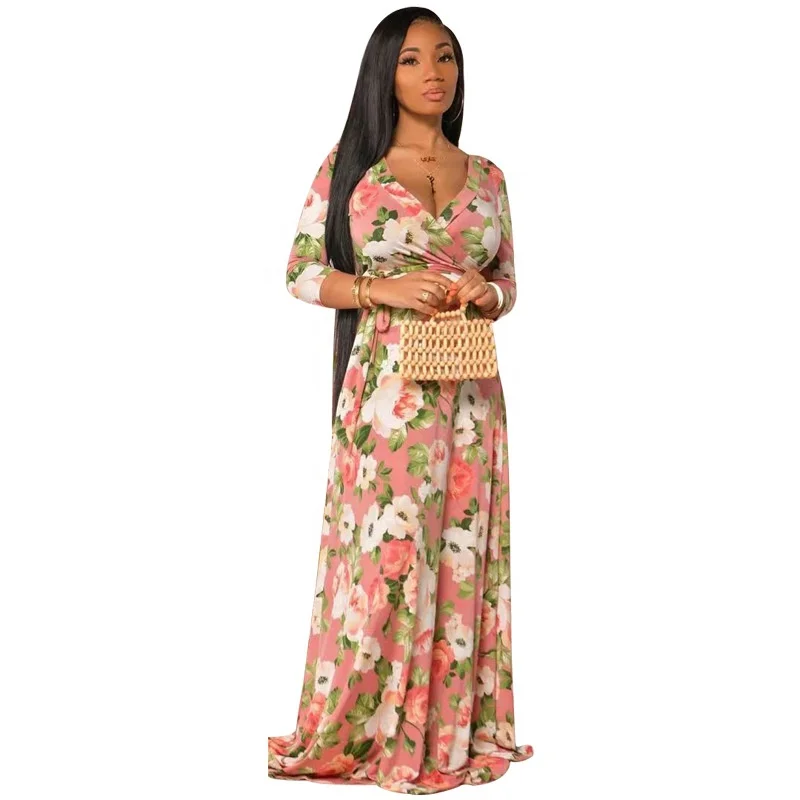 Premium Women's Vintage V-Neck Dress Floral Printed Slim Waist Beach Casual Bodycon Outfits Plain Dyed ODM Supply