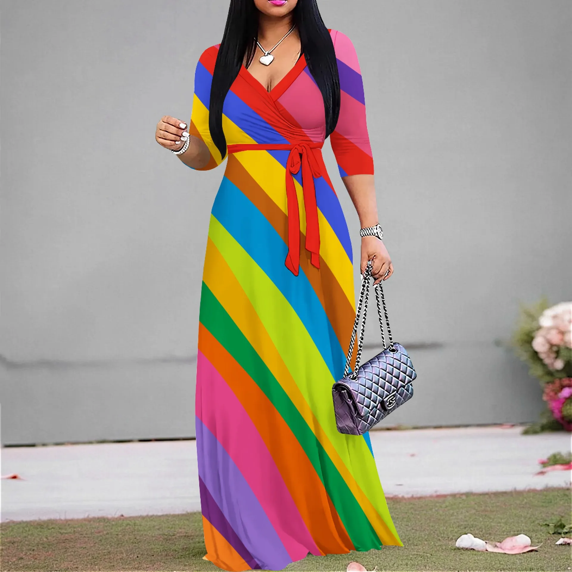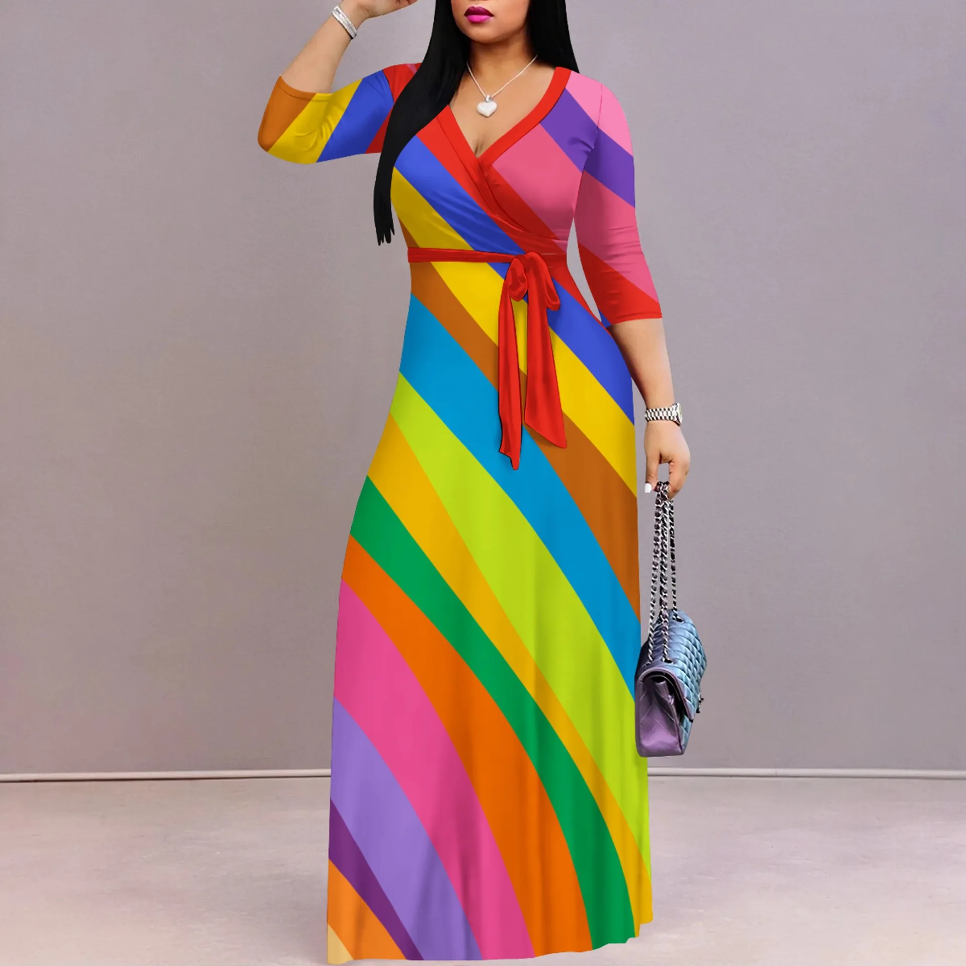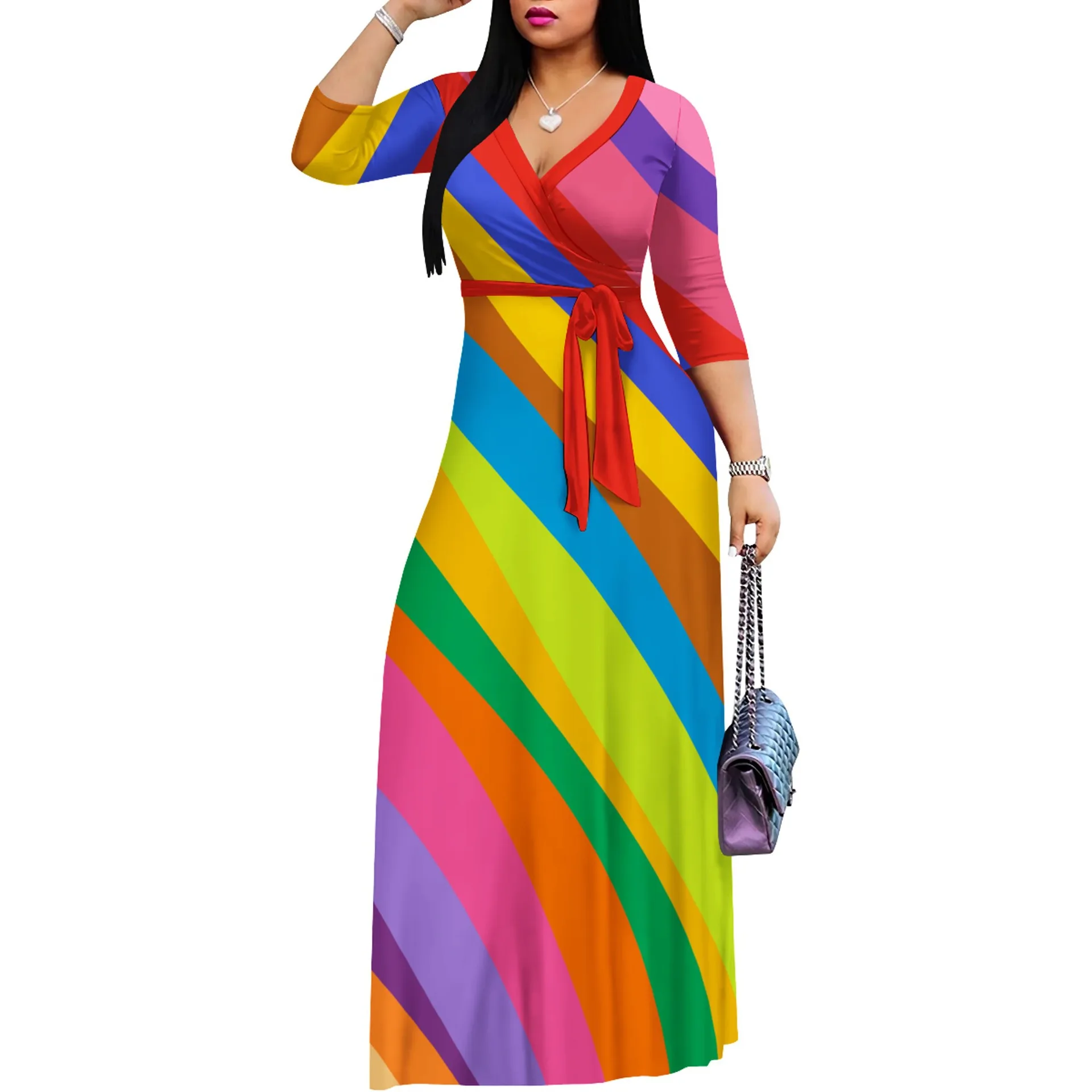 Wholesale Summer Casual Long Empire Dress Hot Selling European American Simple Irregular Multi-Color Plus Size Women's Dress