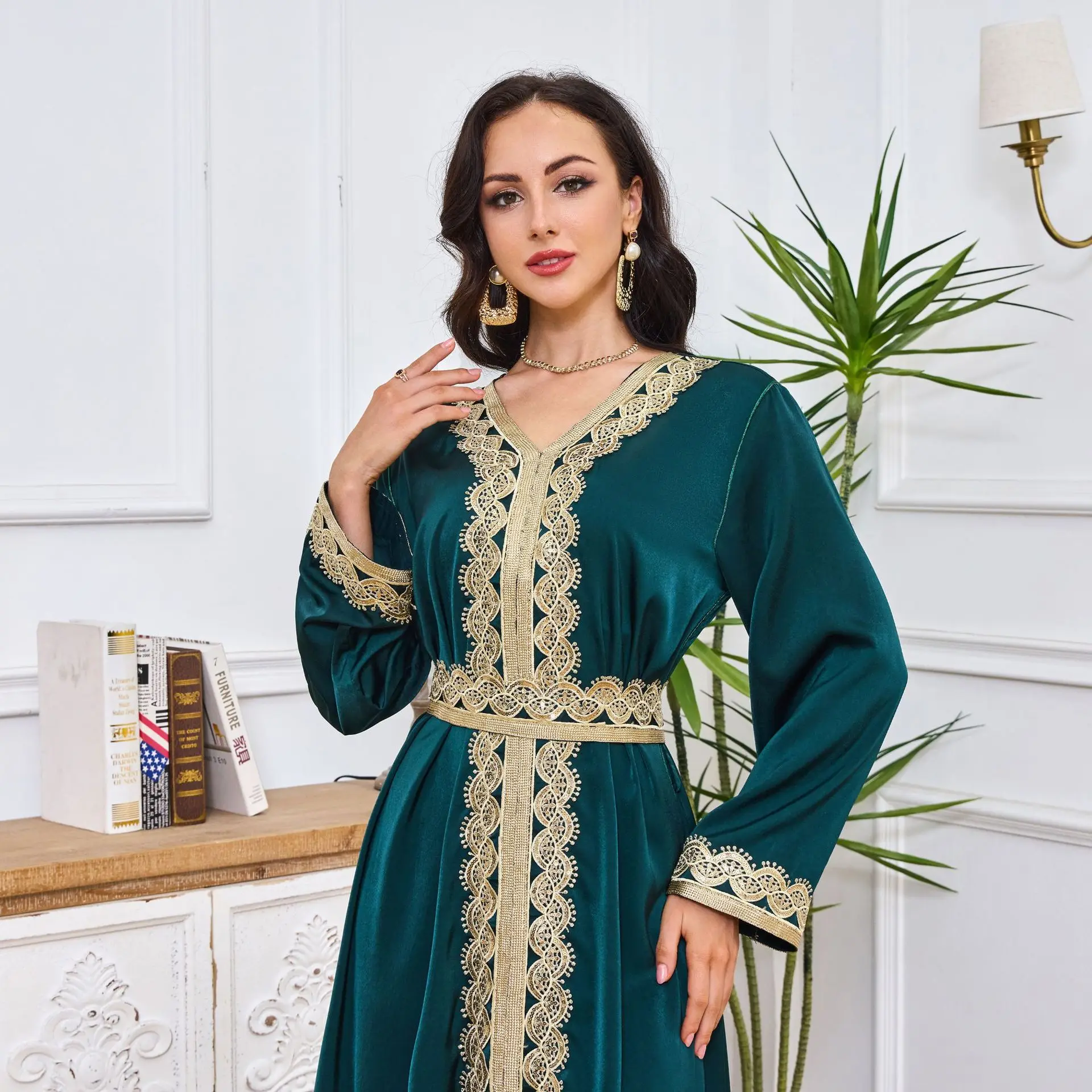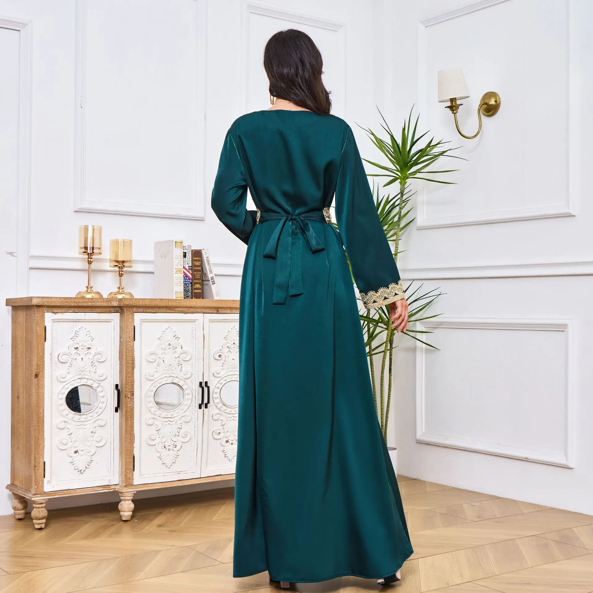 Women's Elegant Slim Abaya Dress XS Size Embroidered Sequin Lace for Summer Breathable Cross-Border for Middle Autumn Spring