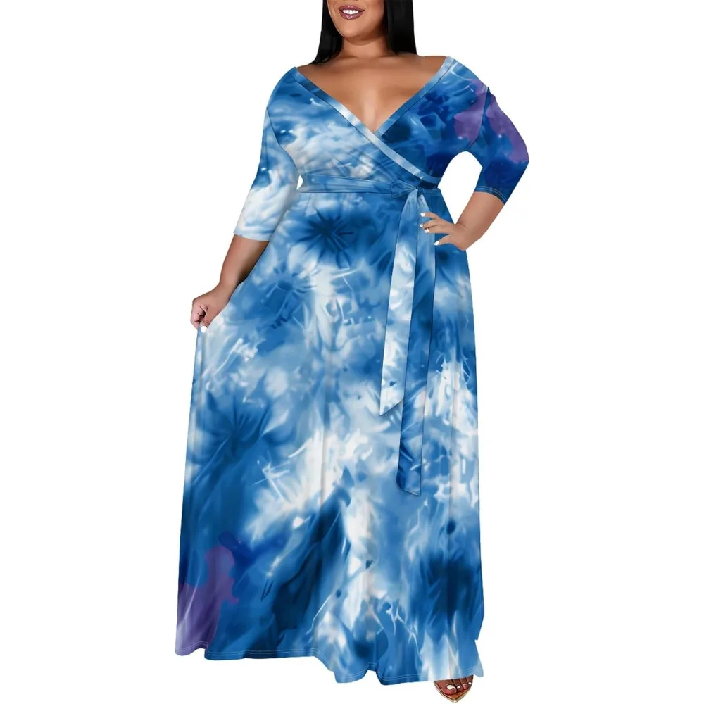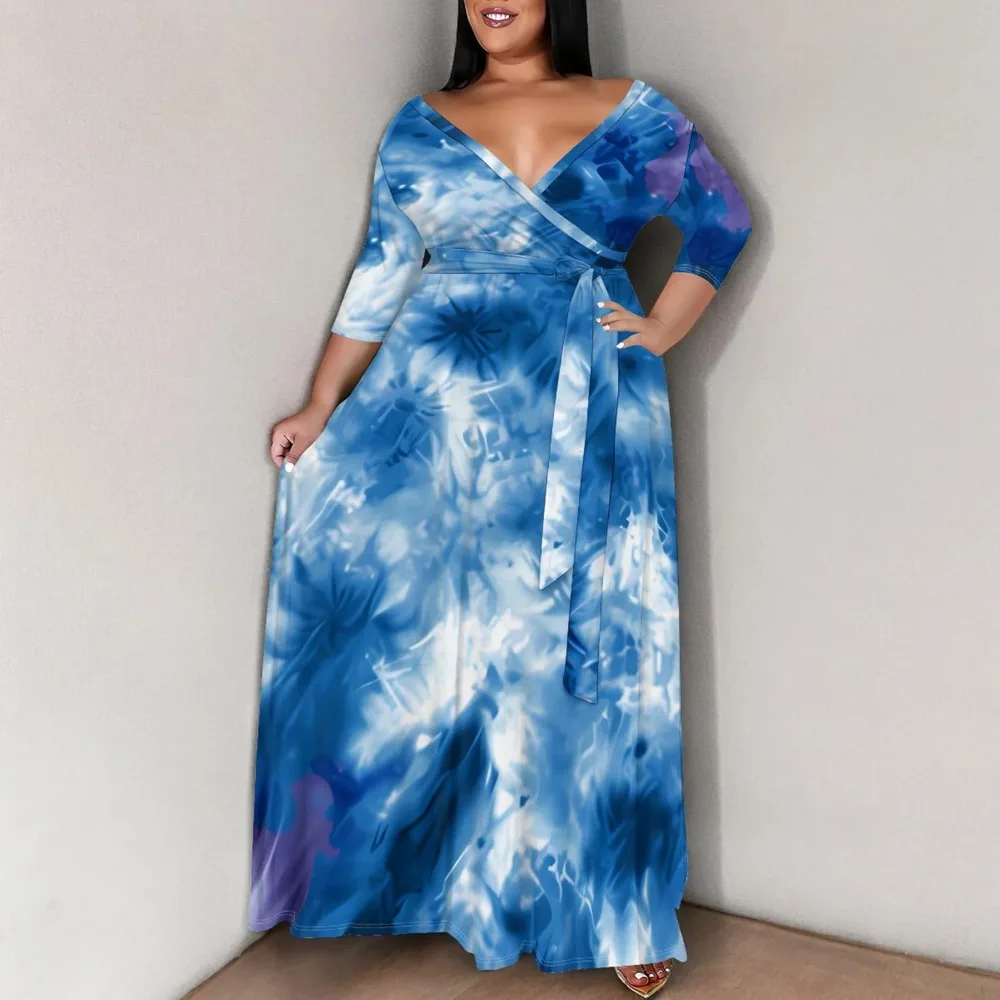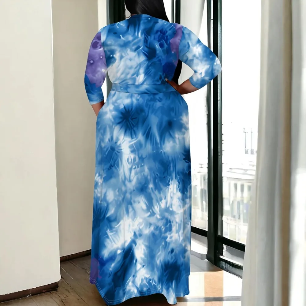 Women's 2024 Summer Casual Maxi Dress Elegant XL-6XL Short Sleeves with Pockets Belt Decorated Casual Vacation Outfits