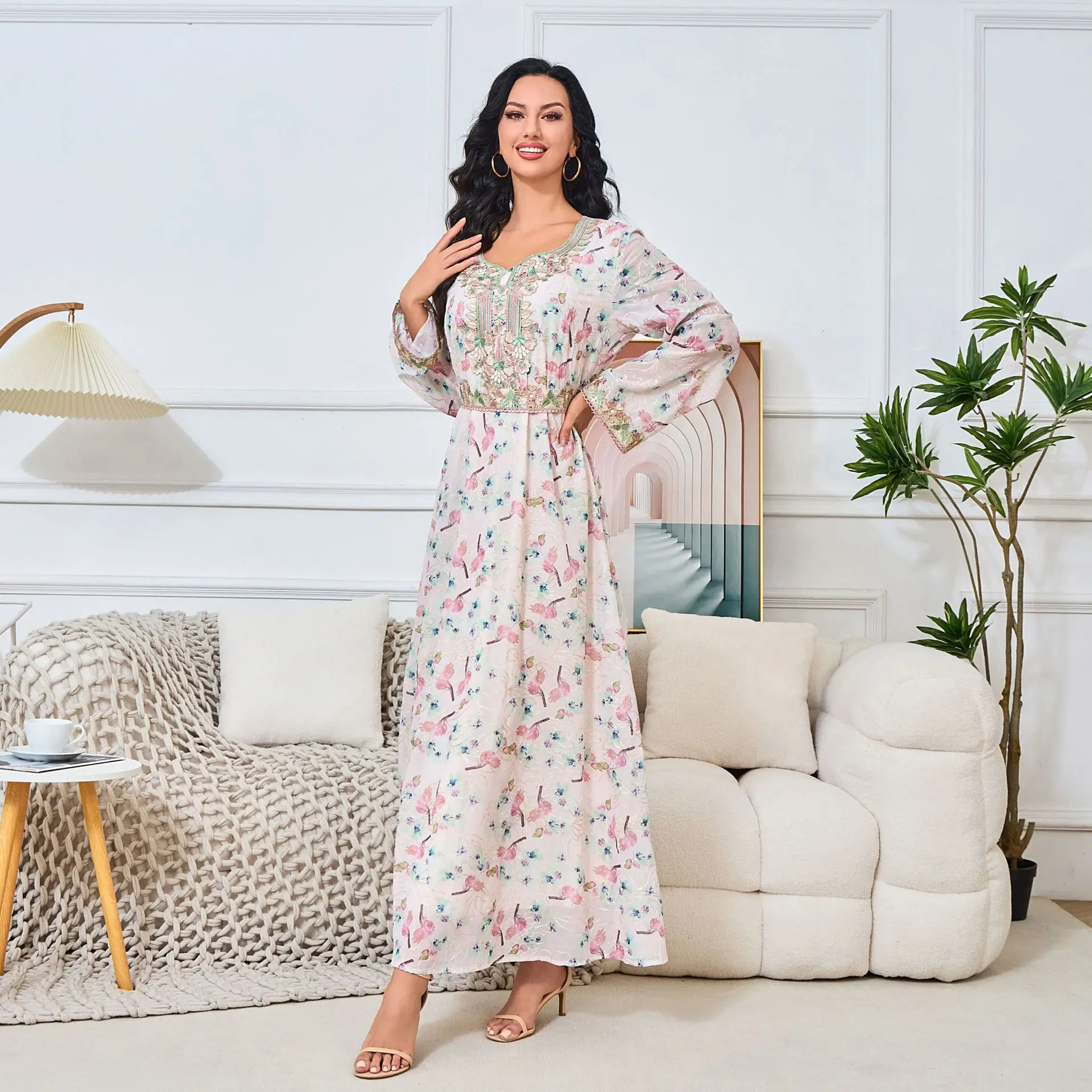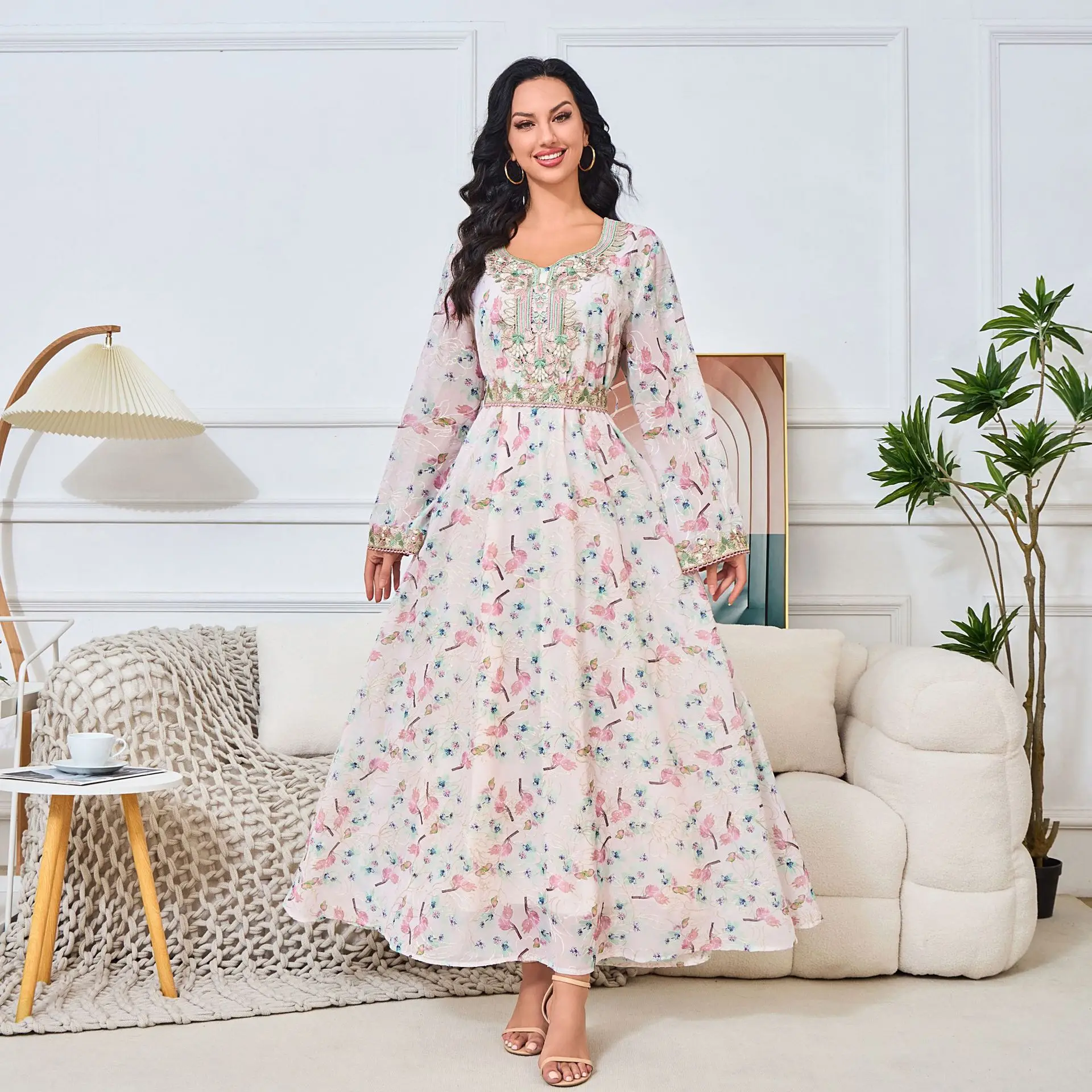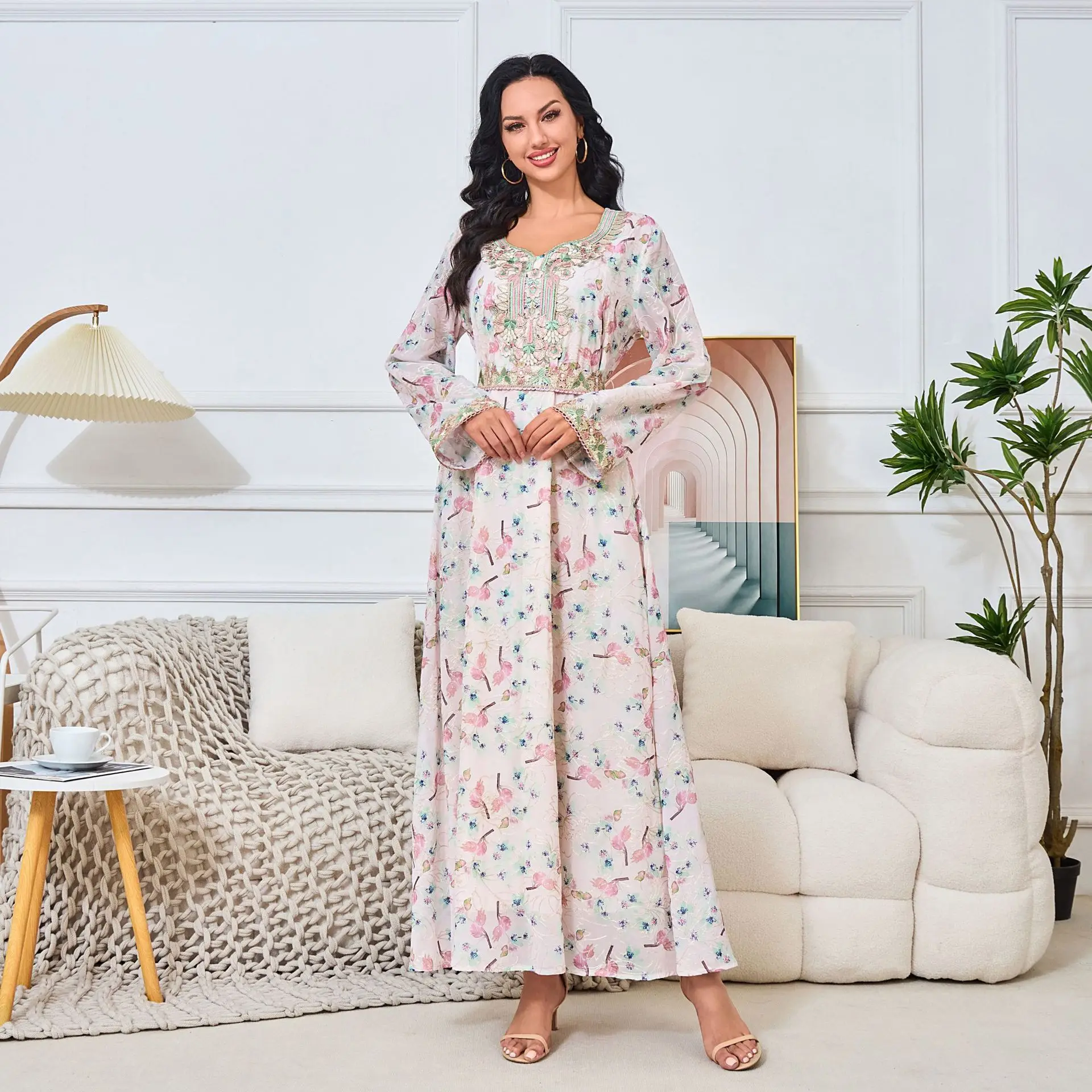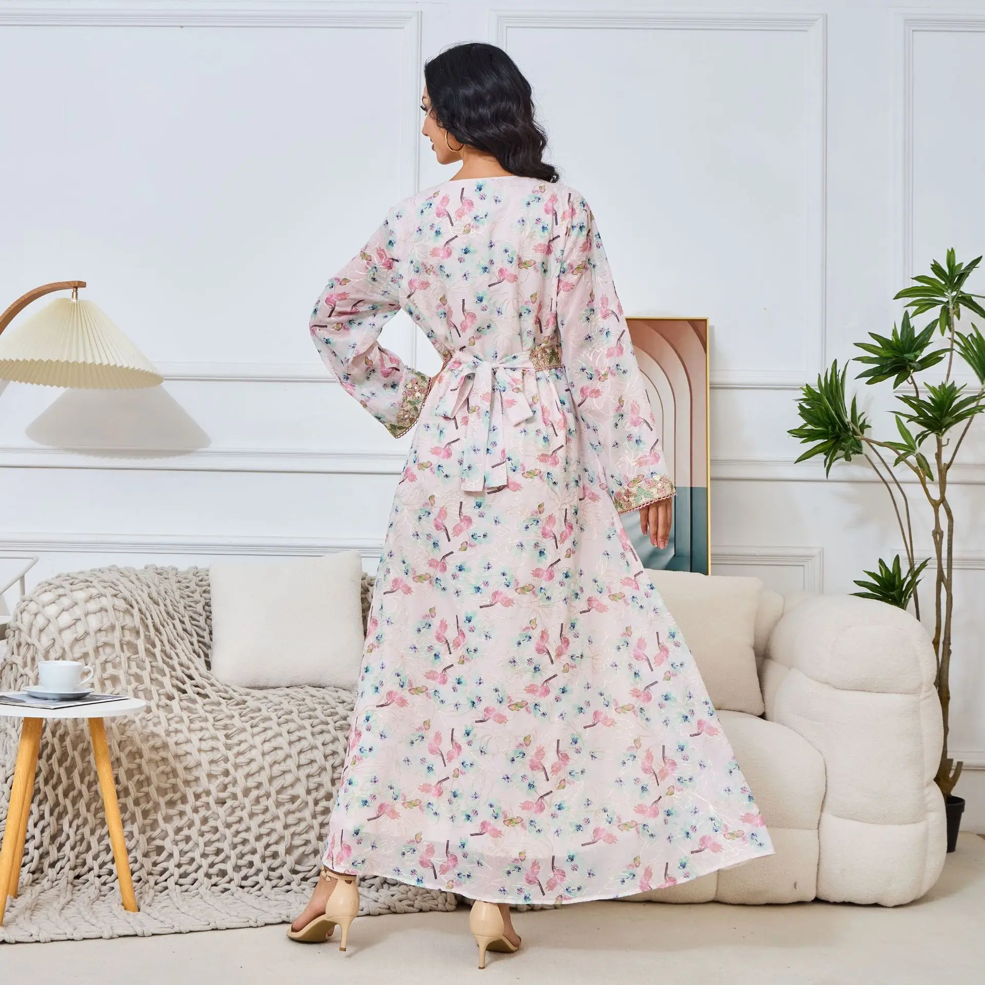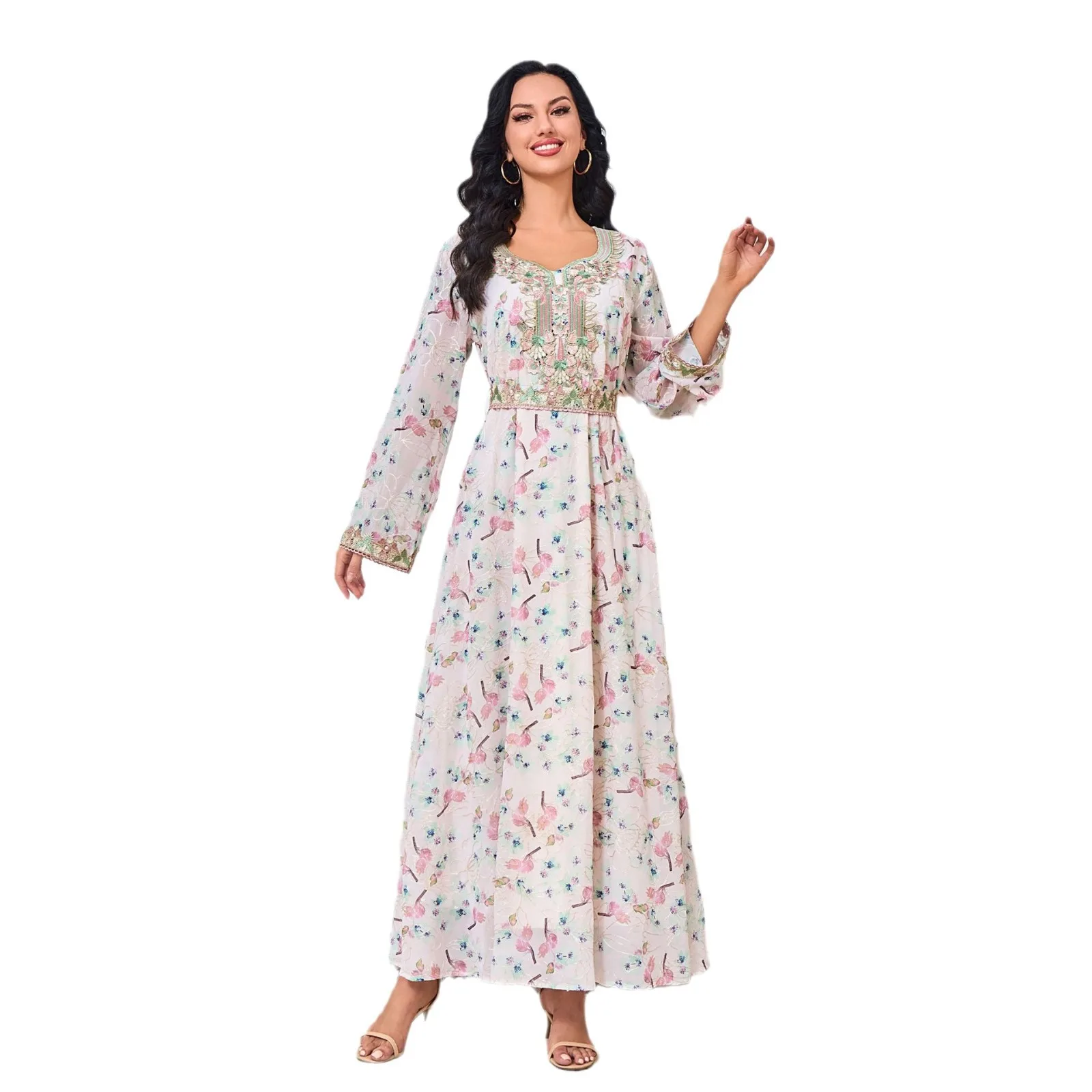 Vintage New Arabic Clothing Long-Sleeved Middle Eastern Abaya Dress for Women Cross-Border European American Made Arc Spring