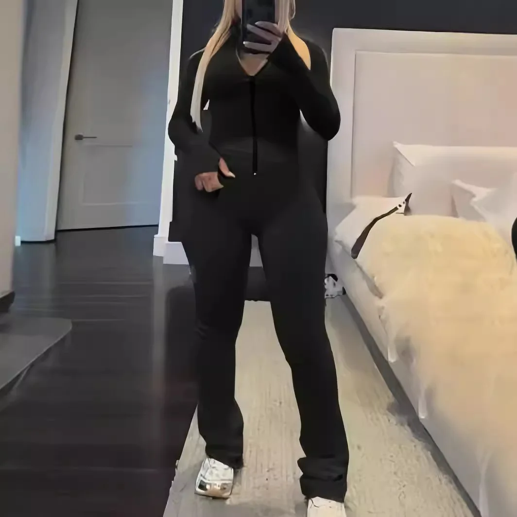 Hot Selling Women Casual Long Sleeve Stand Neck Casual Tops Stacked Pants Set Women Casual Two Piece Set