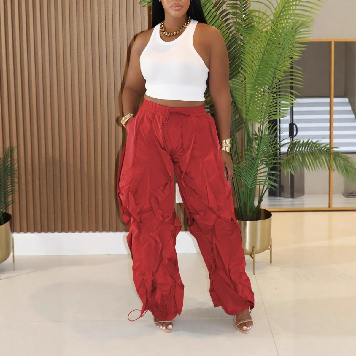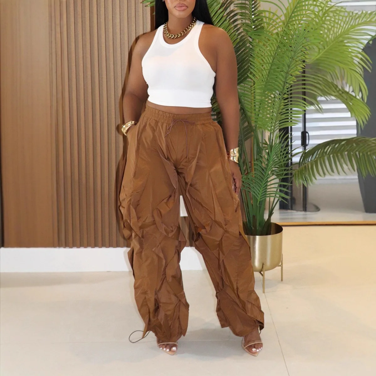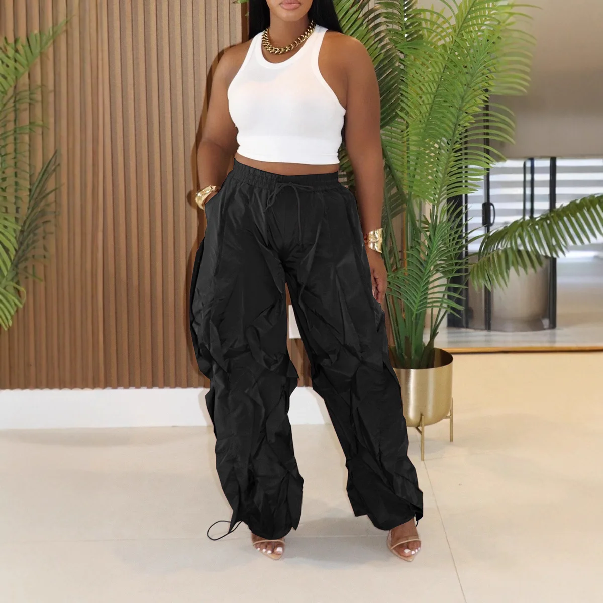 Wholesale Autumn New Design Women Fashion High Waist Street Cargo Pants Loose Pants Women Casual Pants