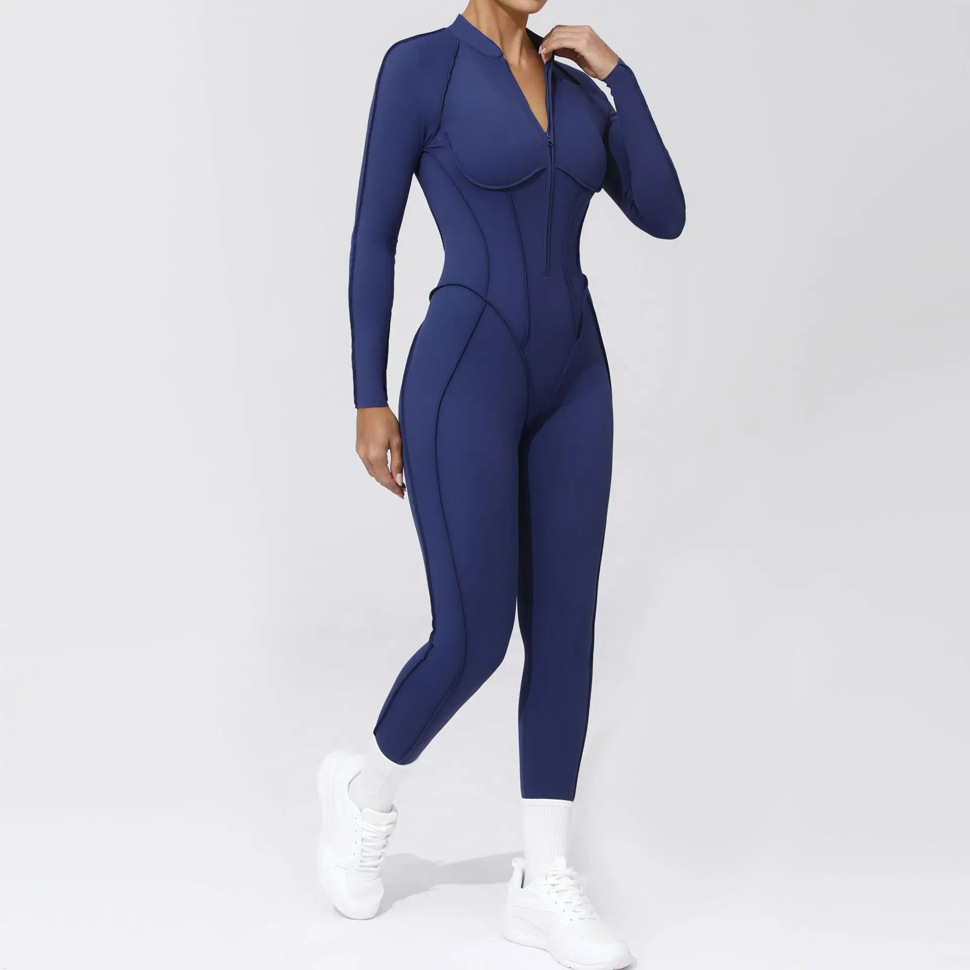 Autumn Winter Hot Selling Sports Wear for Women Long Sleeve Front Zipper Rompers Women Casual Yoga Jumpsuits