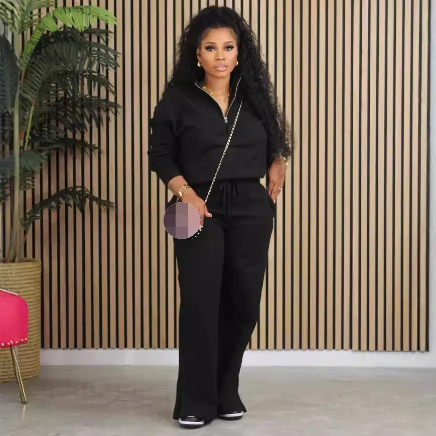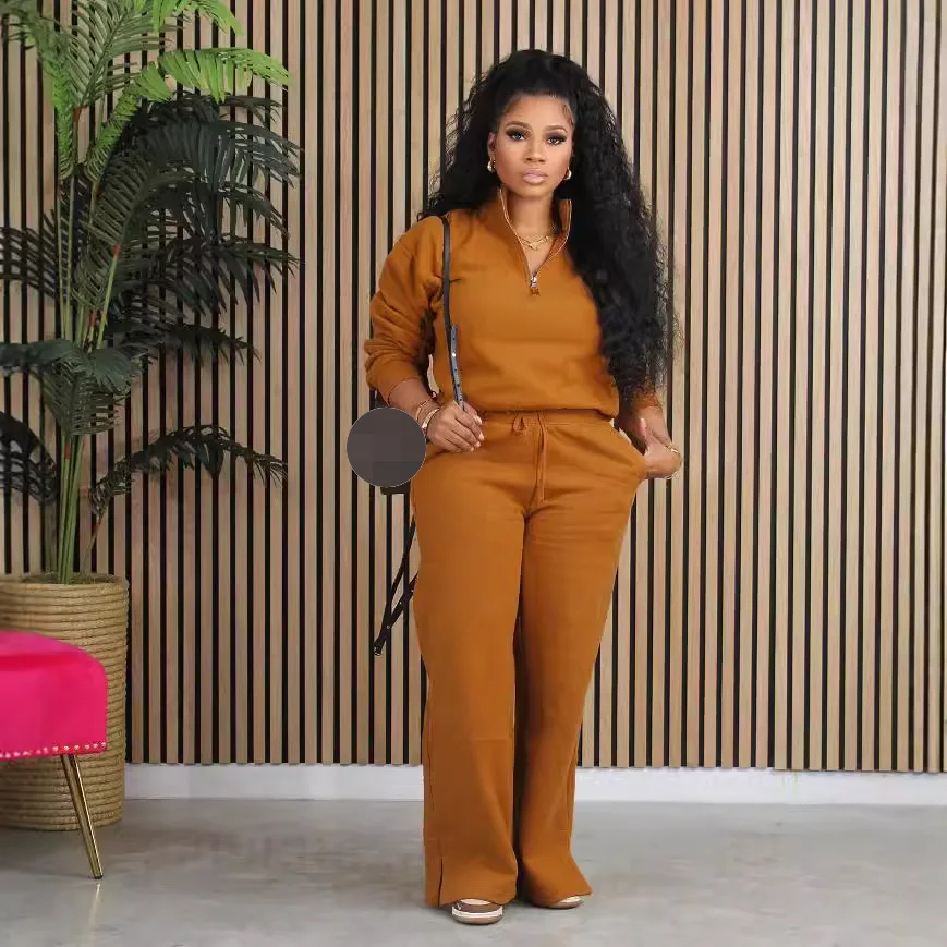 Autumn Hot Sale Fashion Women Two Piece Set Long Sleeve Stand Color Casual Top Women Two Piece Long Pants Set