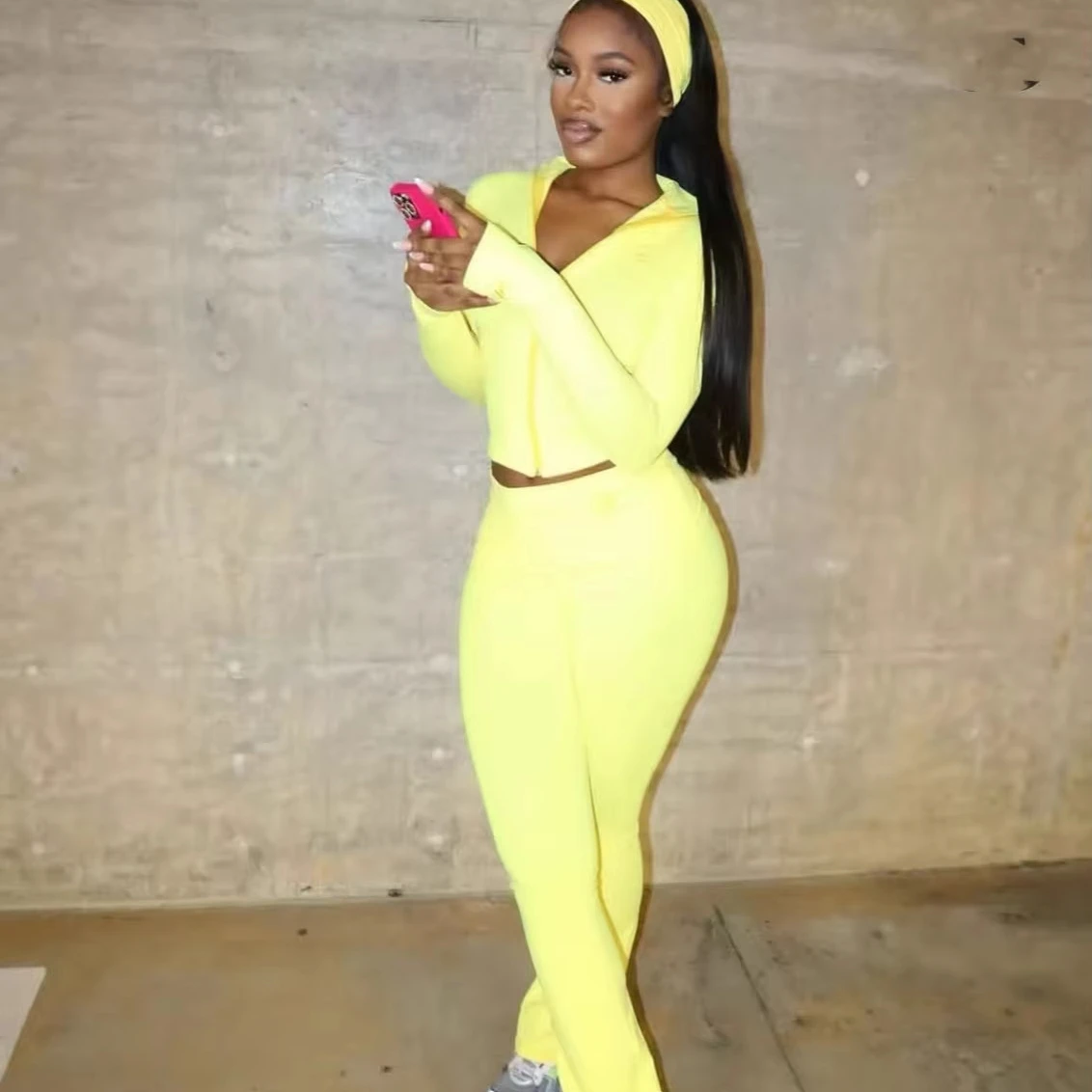 Autumn Women Clothing Long Sleeve Stand Neck Front Zipper Tracksuit Set Women Cropped Top Two Piece Pants Sets