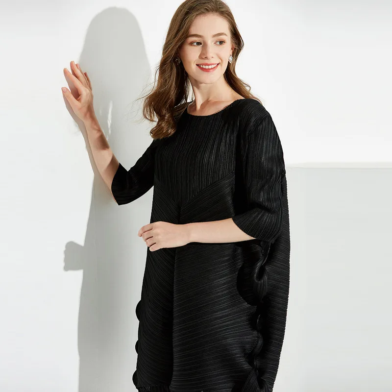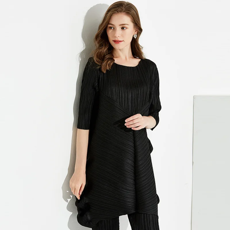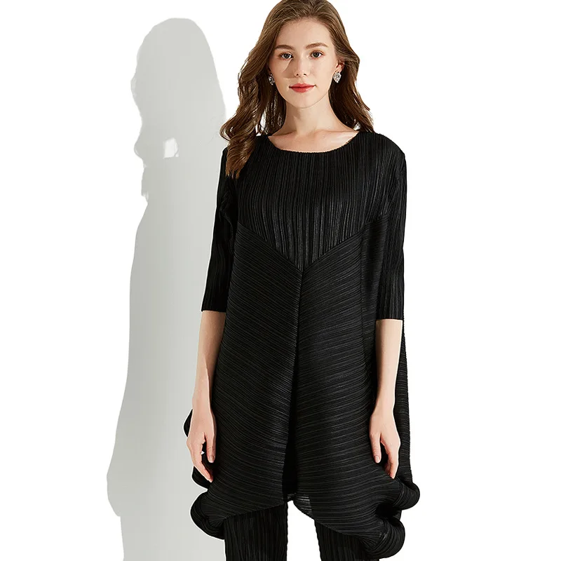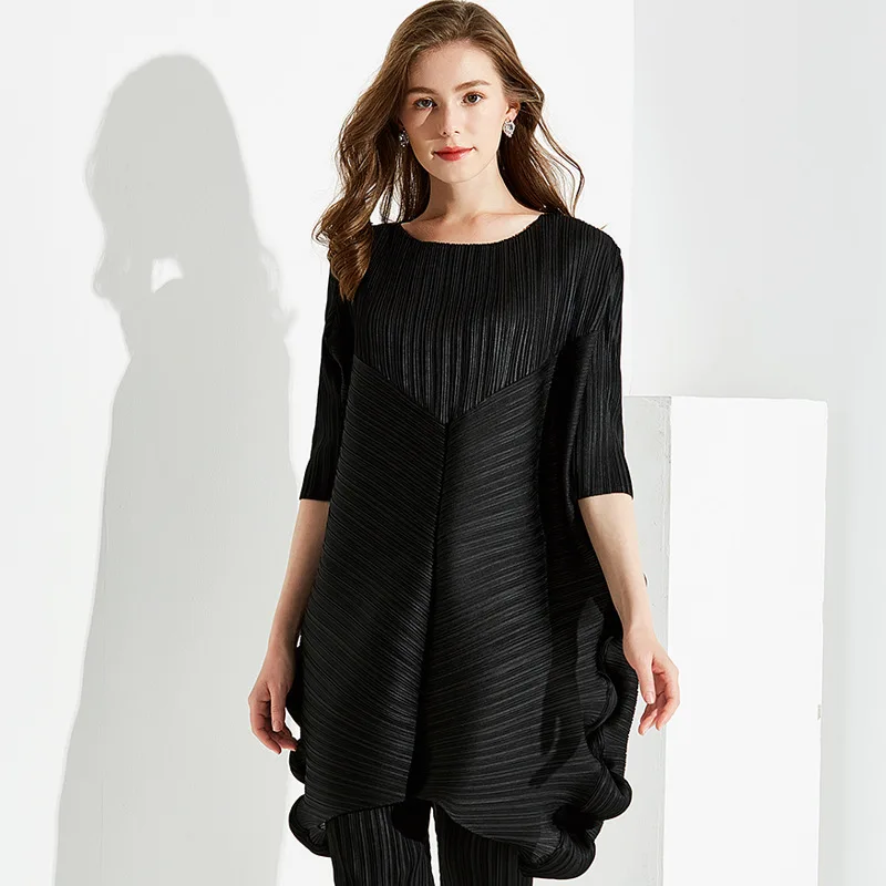 Hot Selling European American Women's Solid Color Pleated Long Shirt Flower Bud Skirt Wiht High Quality Pants Sets