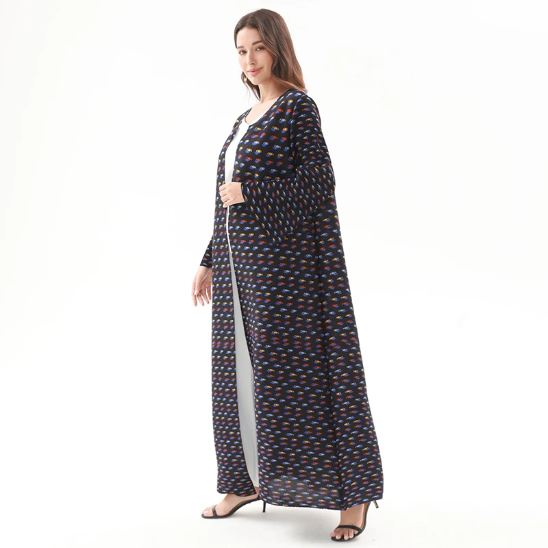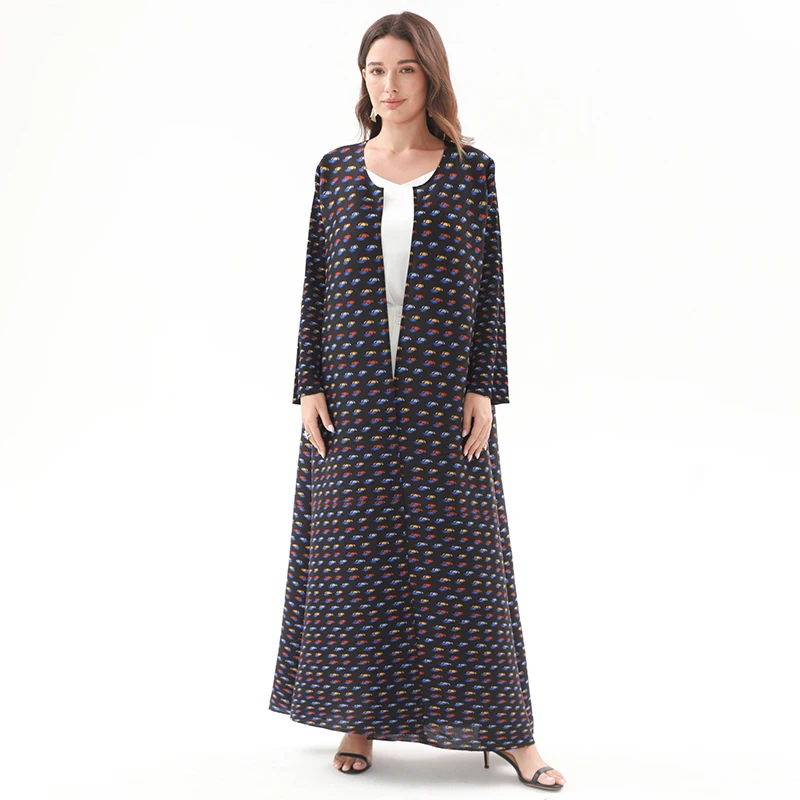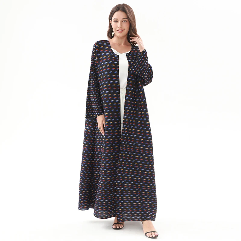 Factory Customized Robe Pleated Trumpet Sleeve Commuting Abaya Miyake Front Open Vintage Long Coat Casual Evening Women Dress