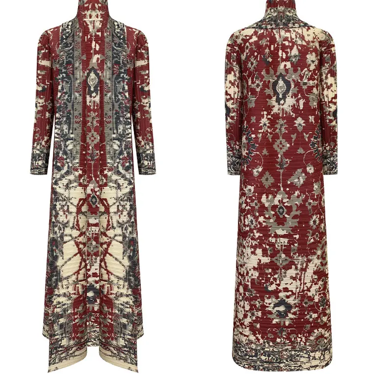 Abaya 2025 Pleated New Design Clothing Women's Dresses Chinese Red Open Abaya Modest Dubai Abaya Women Muslim Pocket Dress