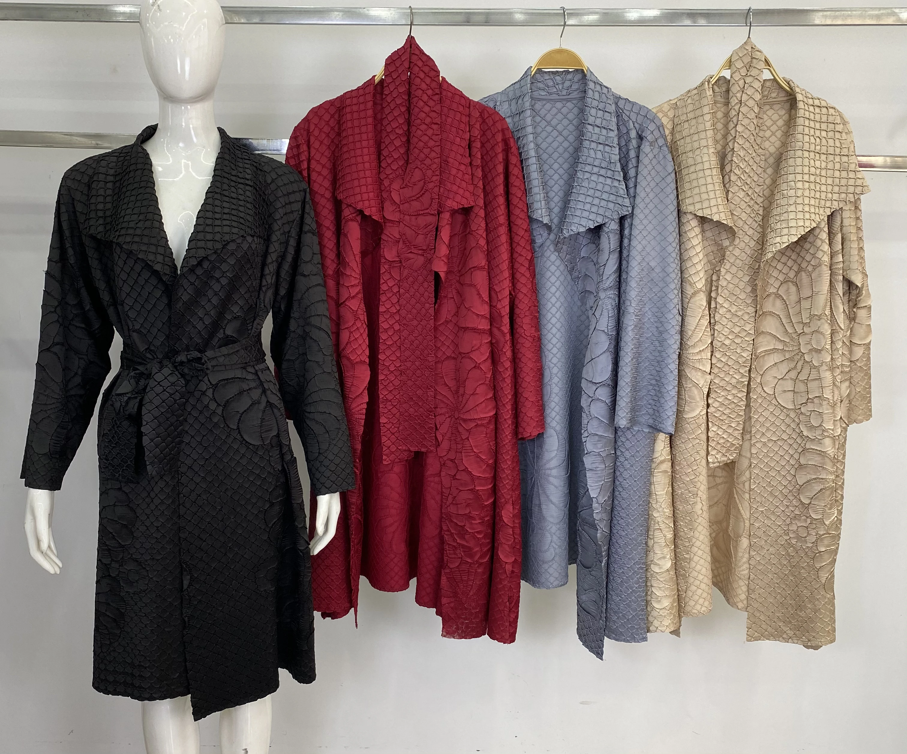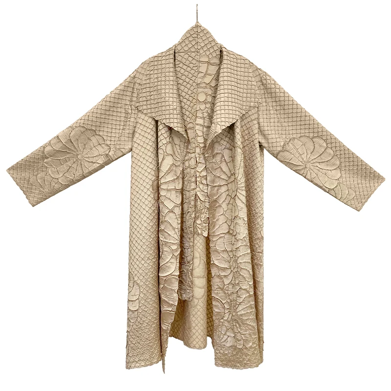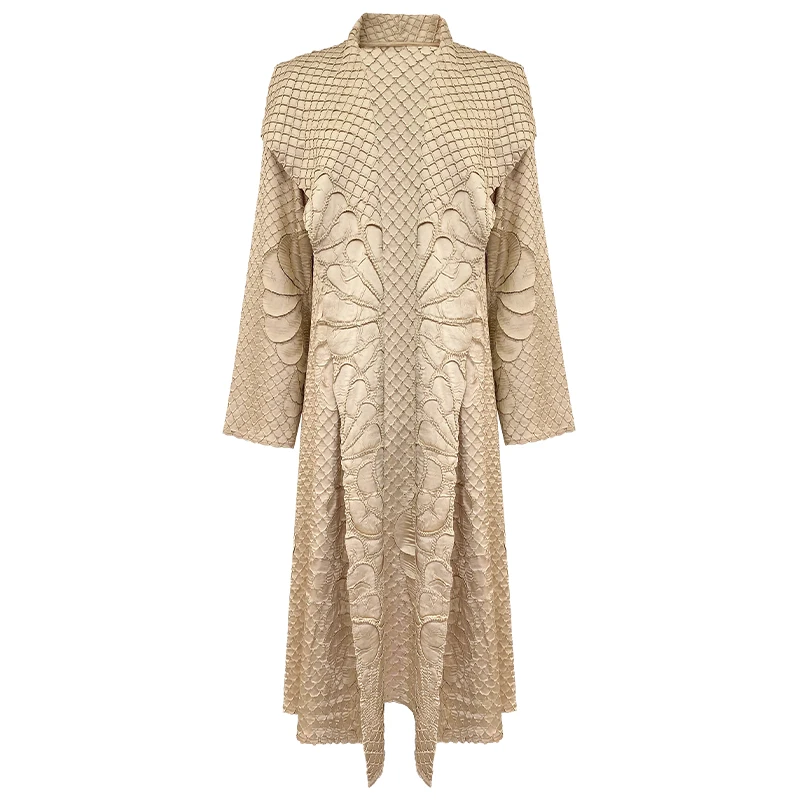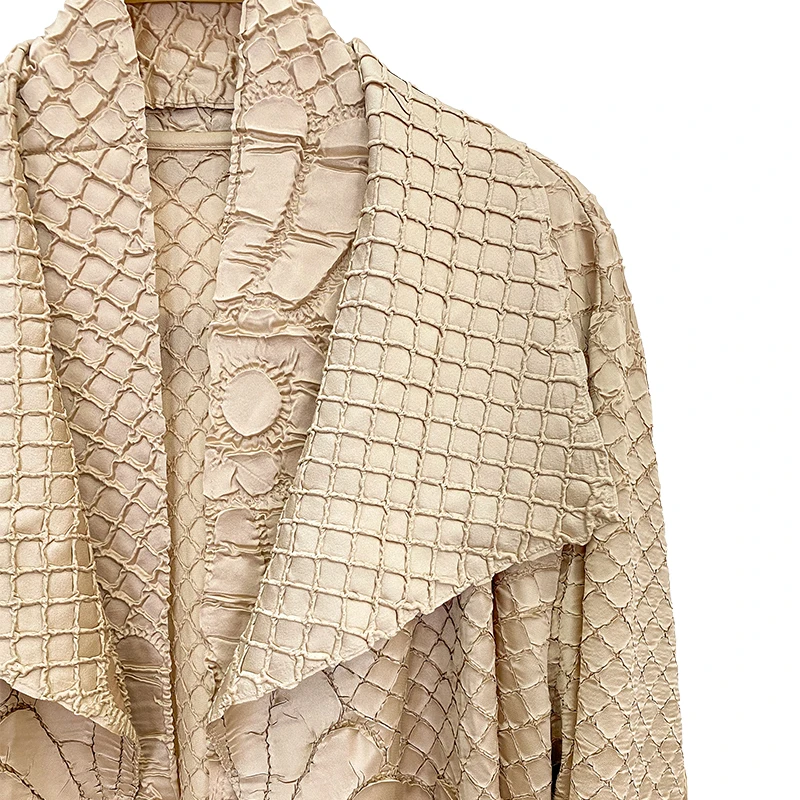 Miyake Pleated Long Sleeved Turndown Collar Cardigan Solid Belt Coat Women Autumn Winter Designer Fashion Abaya Loose Robe Women