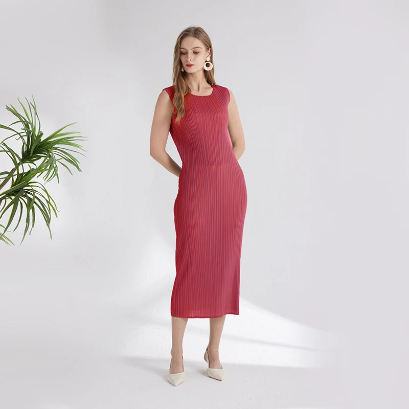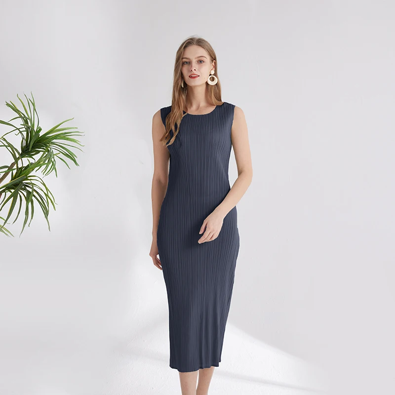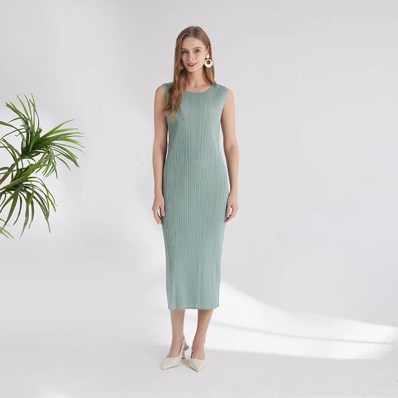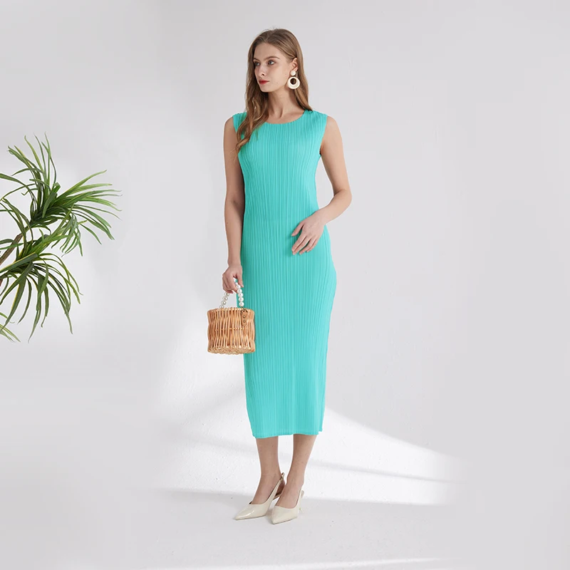 New Summer Fashion Elegant Women's Solid Color Dress Sleeveless Free Size Slim Temperament Simple commuter Dress