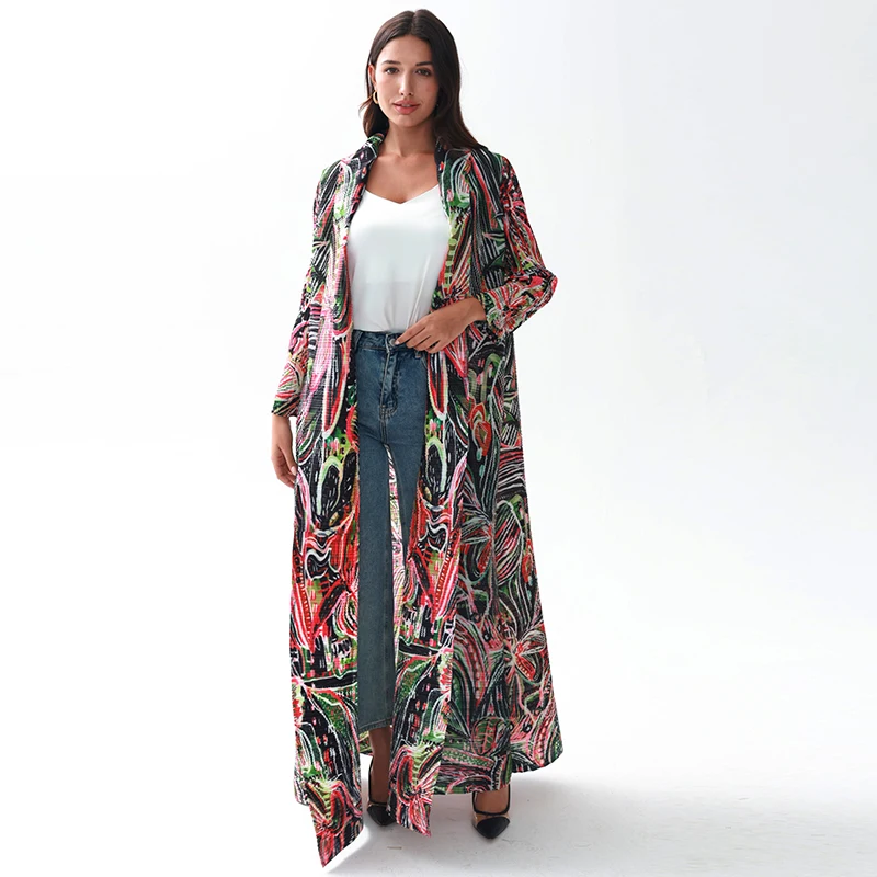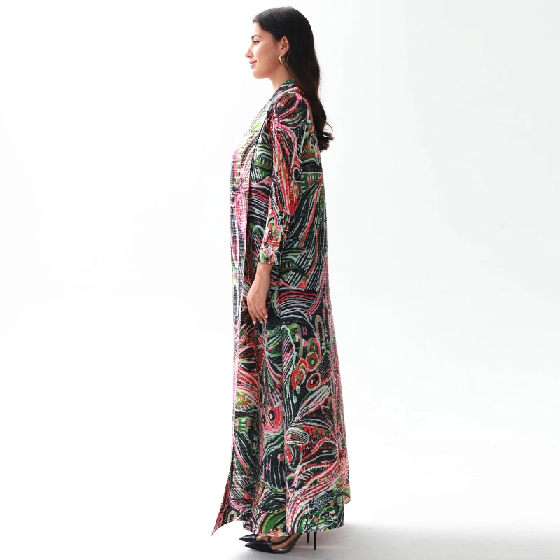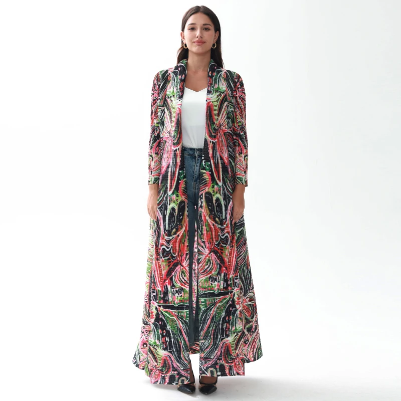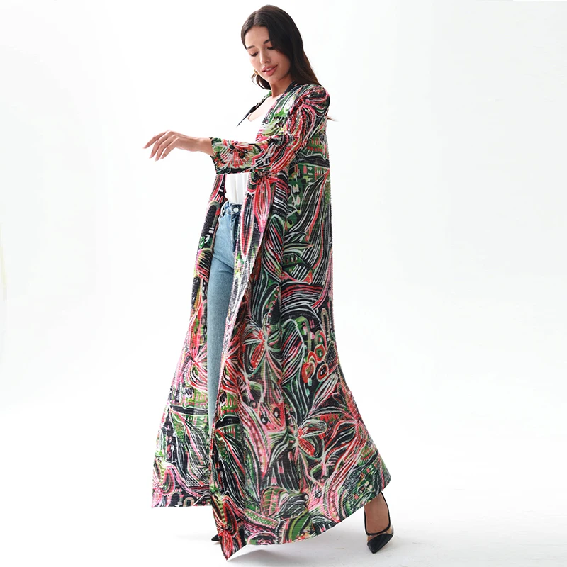 2024 New Design Factory Custom Free Size Muslim Floral Printed Miyake Pleated Abaya Women Modest Fashion Wear