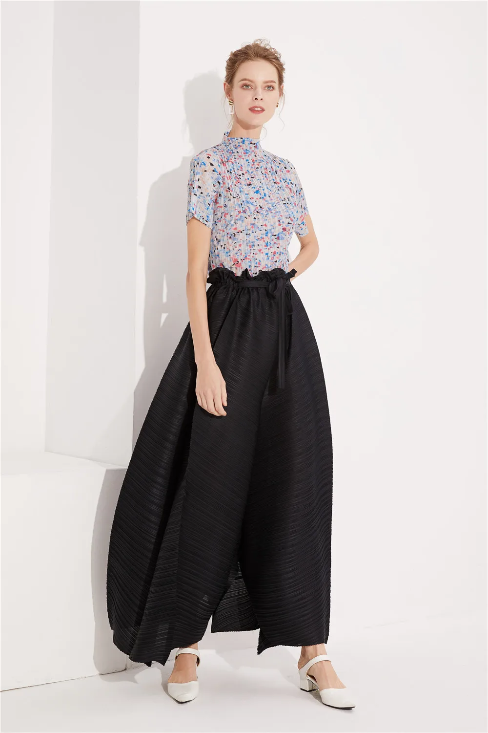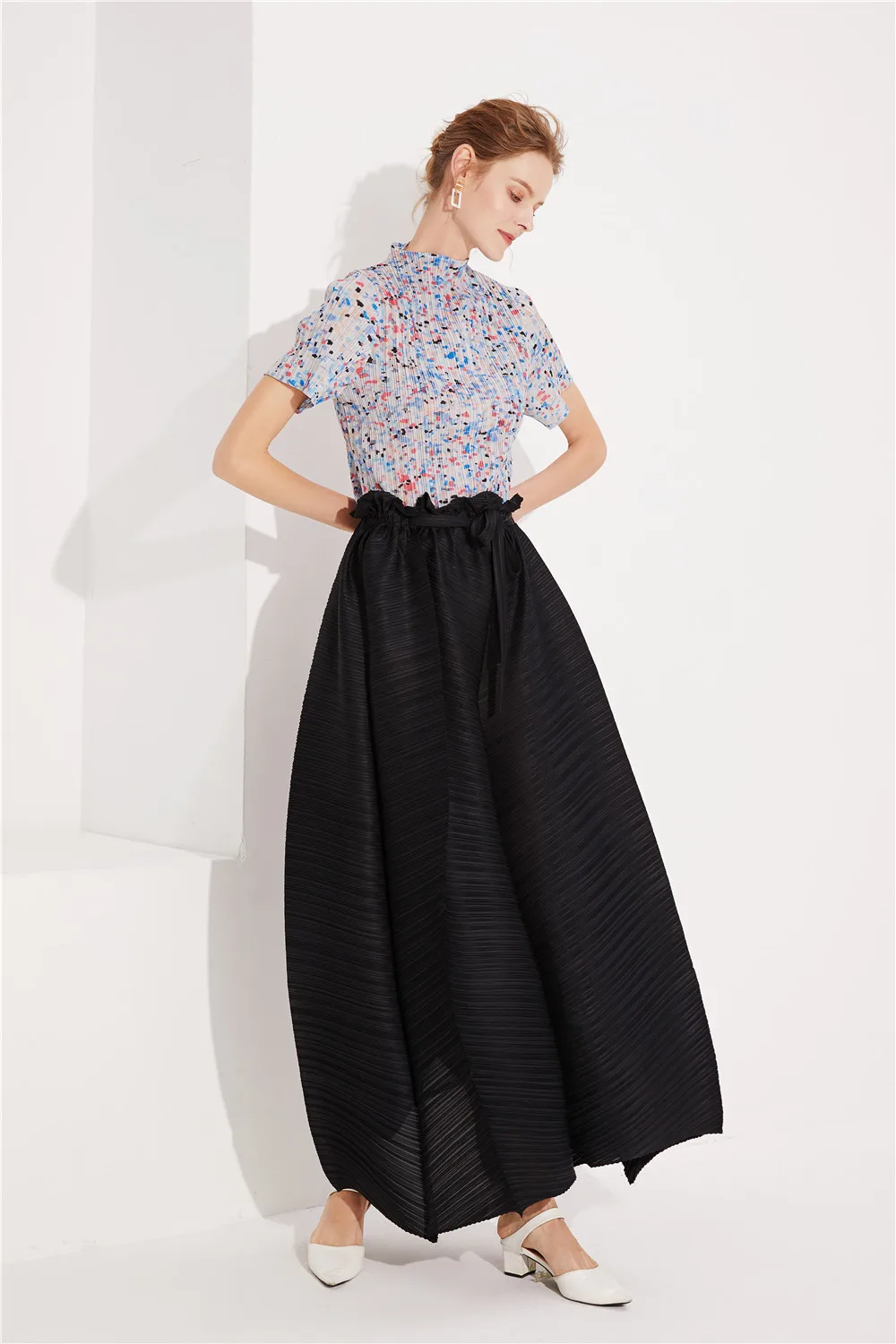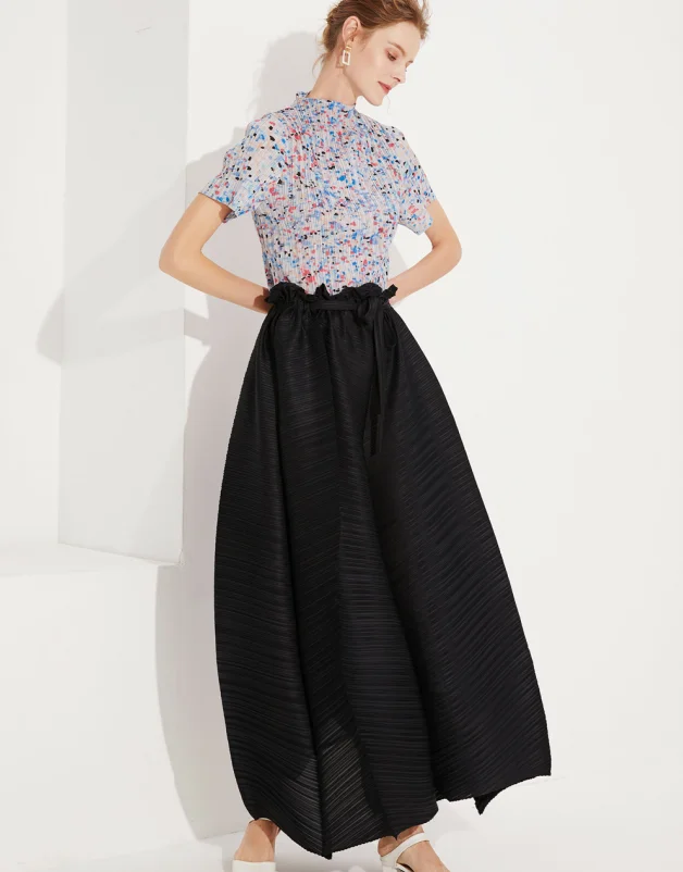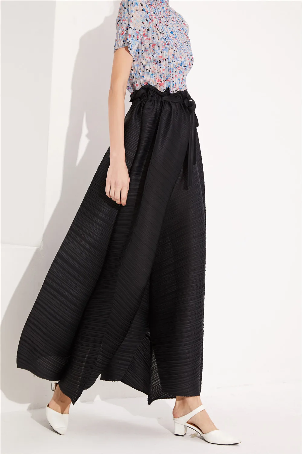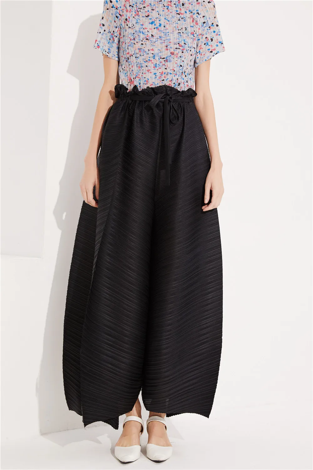 Fashion New Style Ladies High Waist Black Wide Leg Lady Pleated Women Long Pants