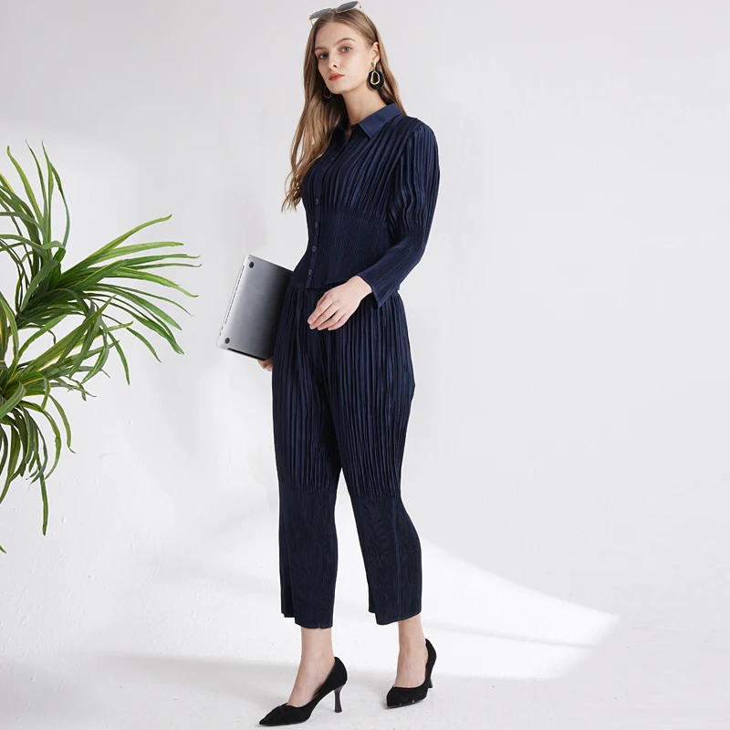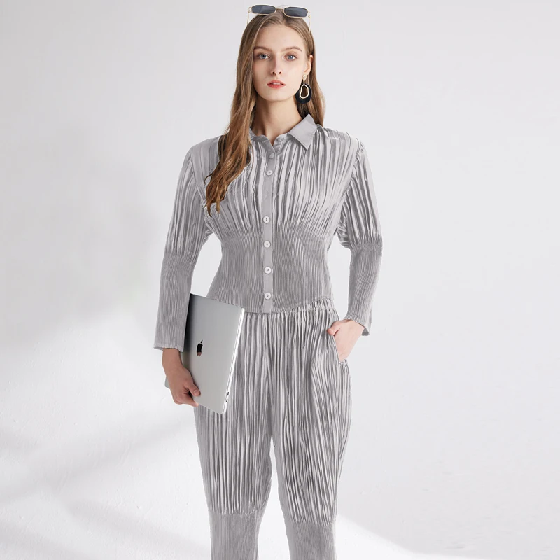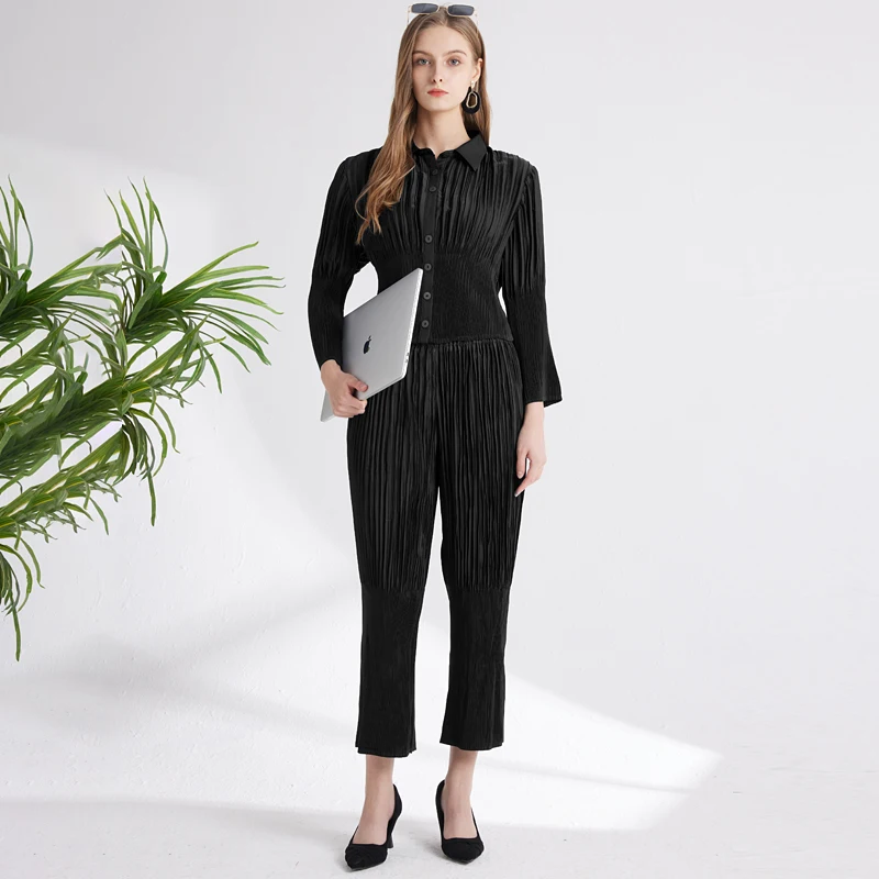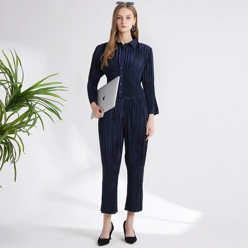 2023 New Slim Elegant Professional Women's Set Pleated Waist Women's Large Solid Color Women's Clothing Customization