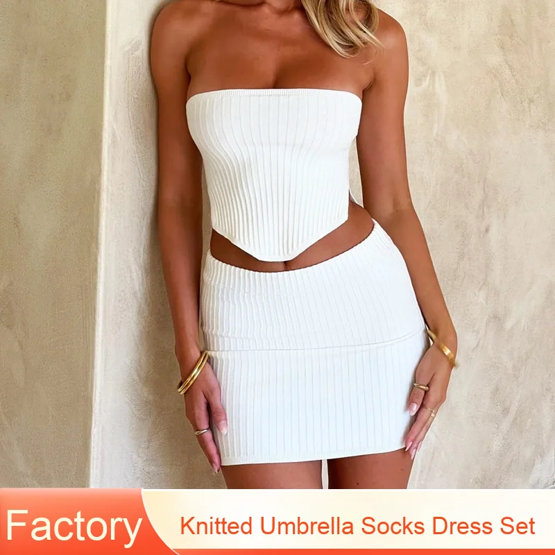 Women's Sexy Skinny Solid Short Tube Hip Skirt Suit Customizable Size Navel-Covering Breathable Knitted Side Slit Strapless