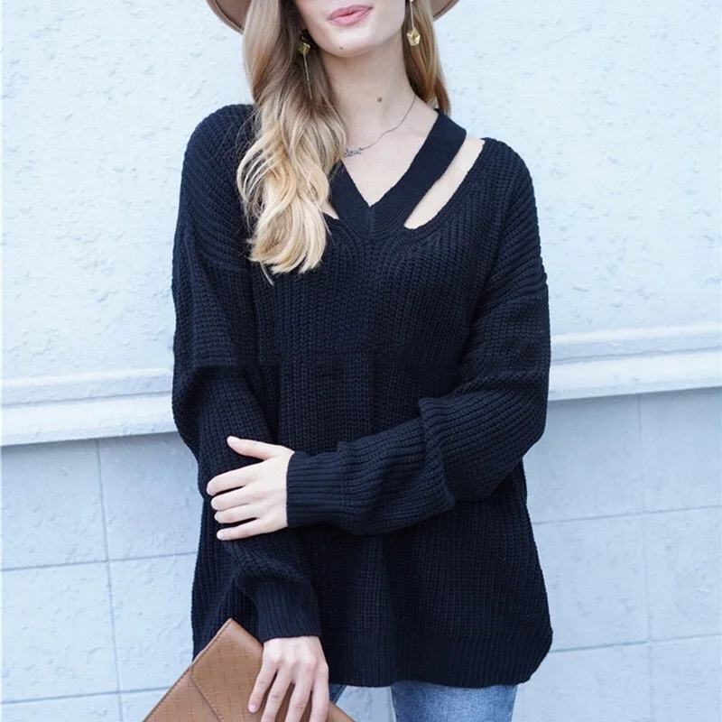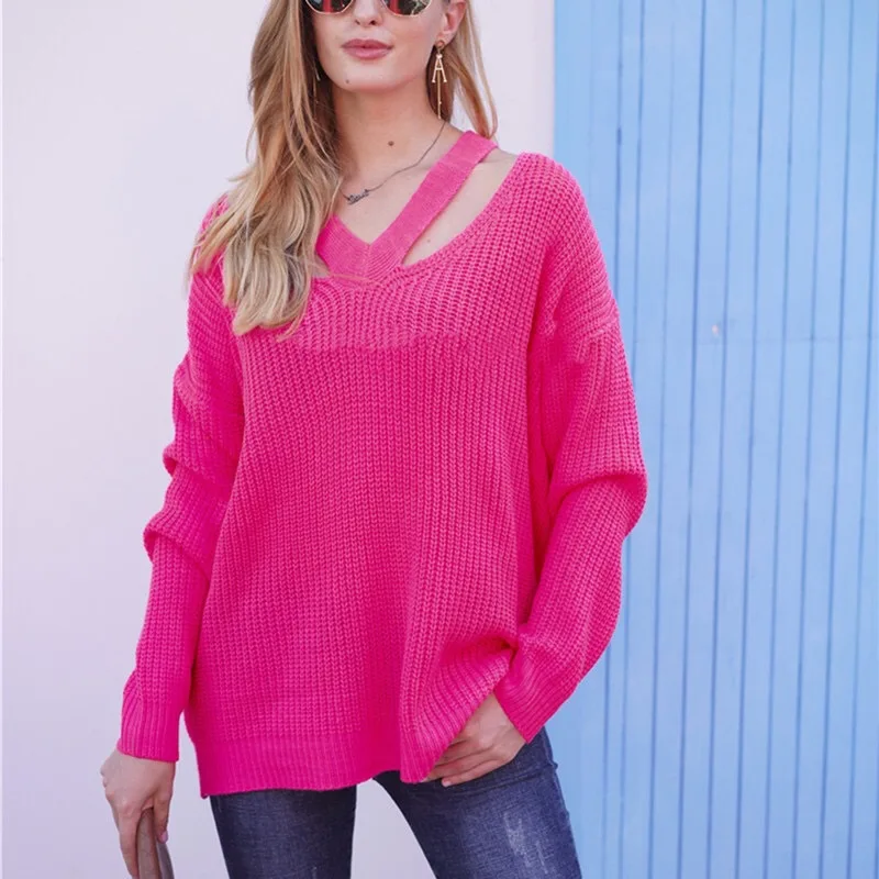 Autumn Winter Knitted Polyester/Cotton Breathable Yarn Dyed Front Elegant V Neck Pullover Women Korean Style Pure Color Loose