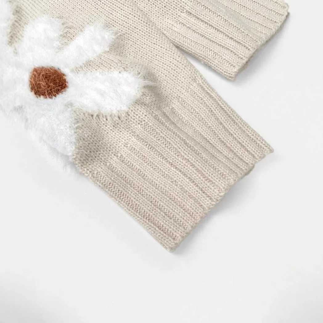 European American Floral Jacquard Long Sleeve Pullover for Women Korean Style Autumn Knitted Weaving Cross-Border Trade
