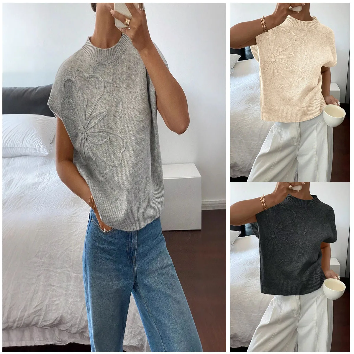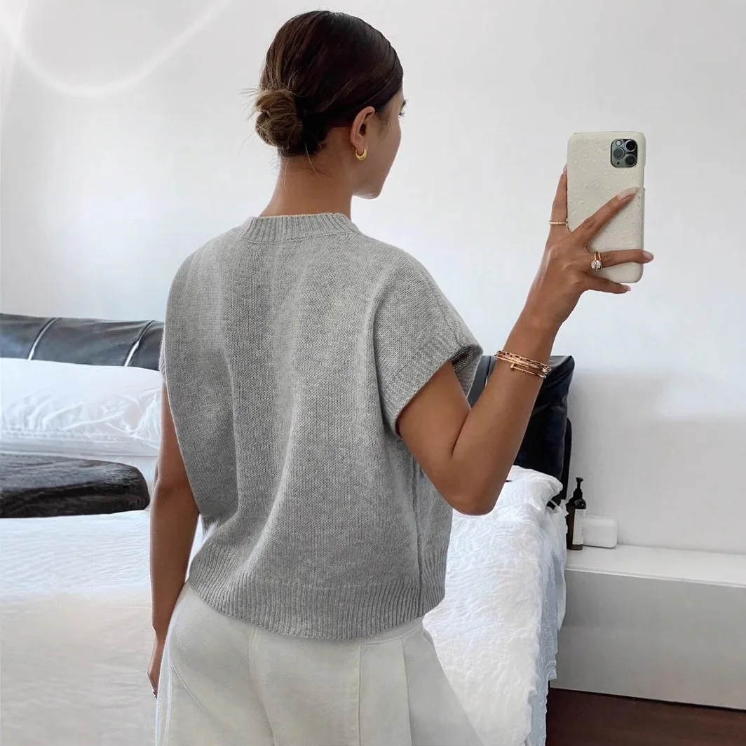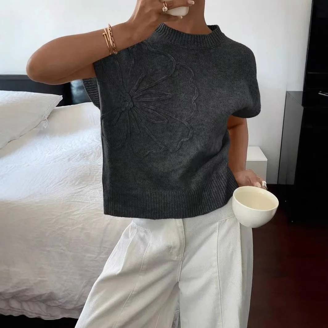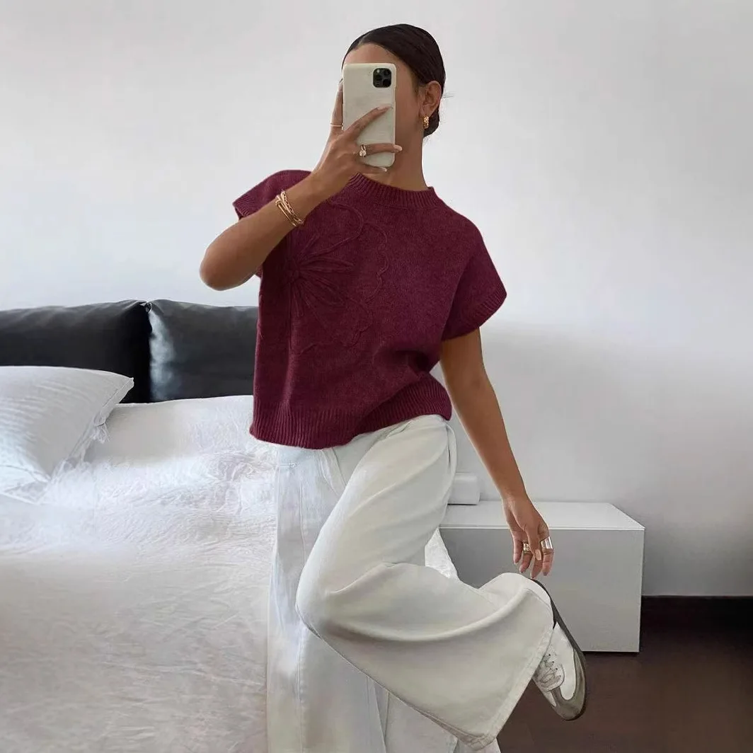 Women's Elegant Jacquard Knit Tops New Slim Pure Color Printed Spring Summer Casual Design Wholesale Price Cross-Border Fashion