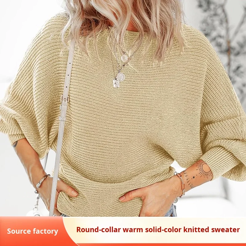 Women's Korean Style Long Sleeve Neck Pullover Autumn Winter New Anti-Pilling Spandex/Cotton Knitted Sweater Loose Solid Color