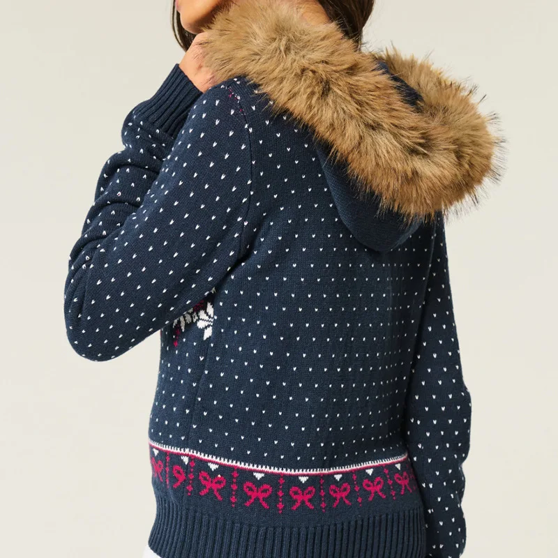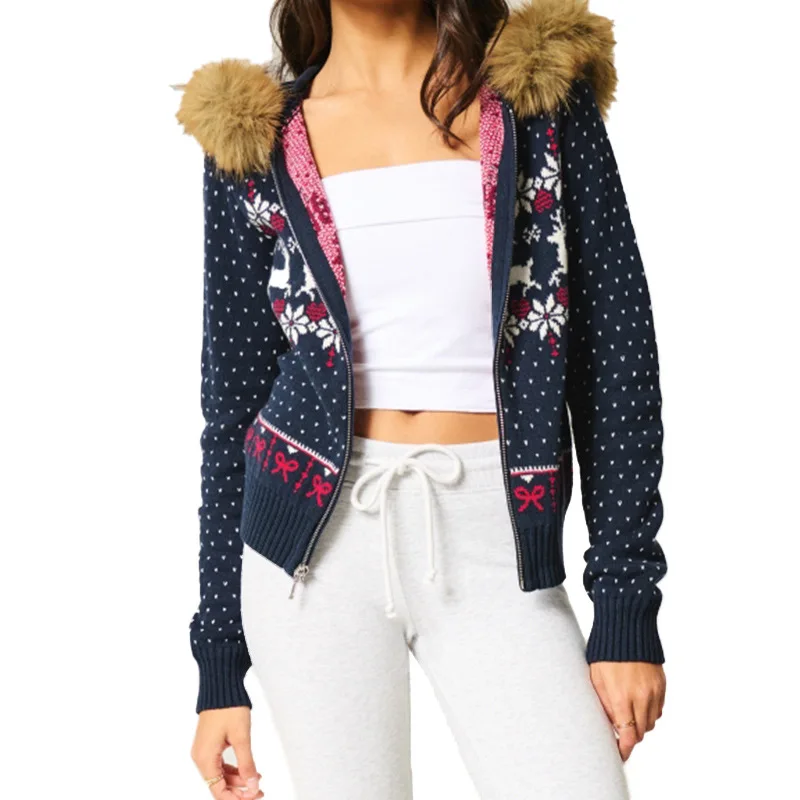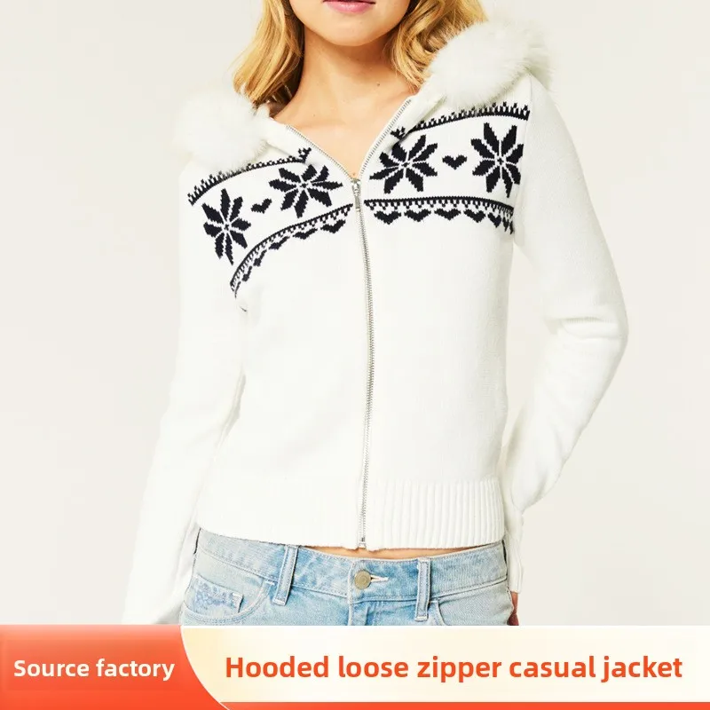 2025 Vintage European American Women's 100% Acrylic Anti-Pilling Knitted Crew Neck Cardigan Winter Warm Top Coats