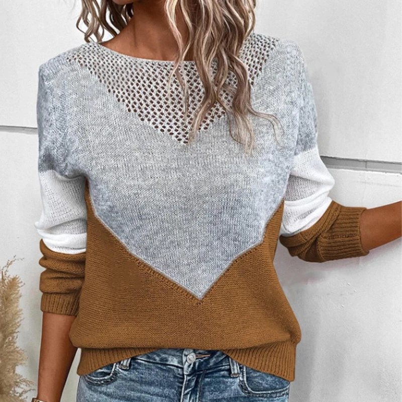 Hot-Selling New Fashion Long-Sleeve Women's Knitted Sweater Casual Breathable Color-Block Blouses Shirts for Winter Cross-Border