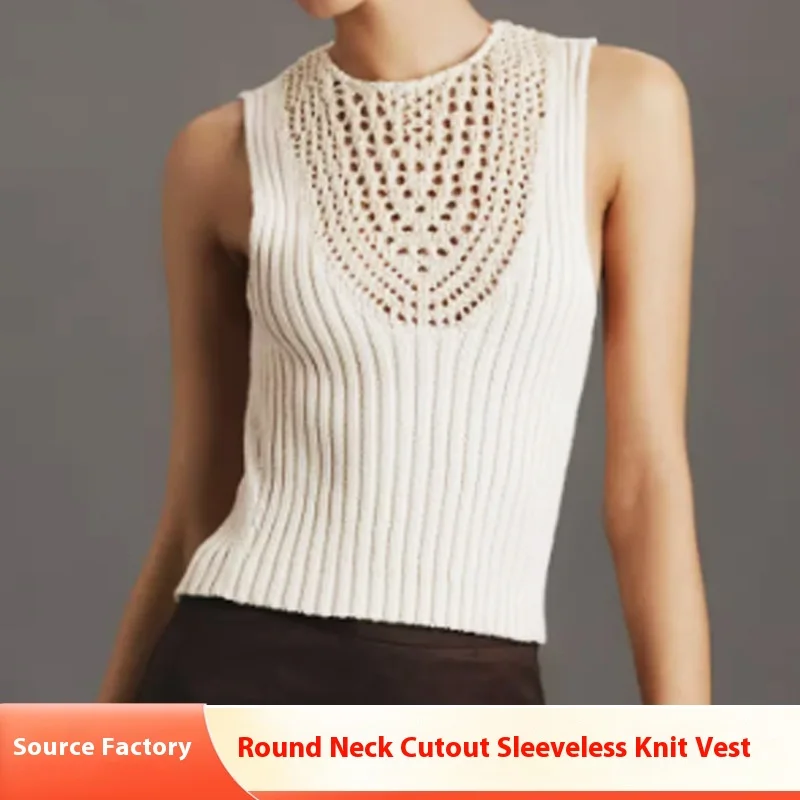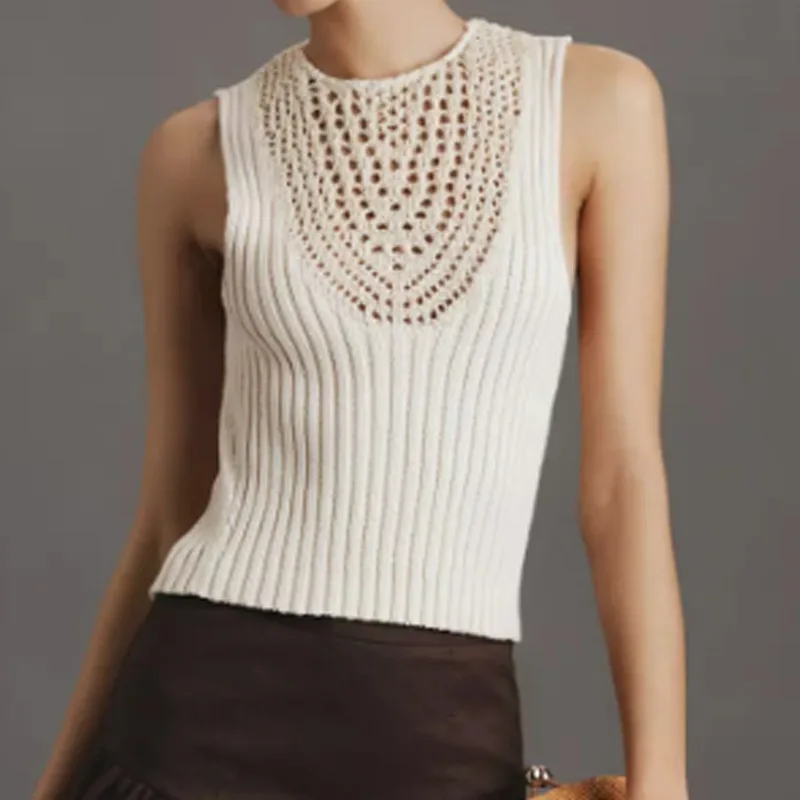 Women's Casual Slim Fit Summer Solid Color Knit Vest Free Size Sleeveless Korean Style Fashionable Sweater Pattern Decoration