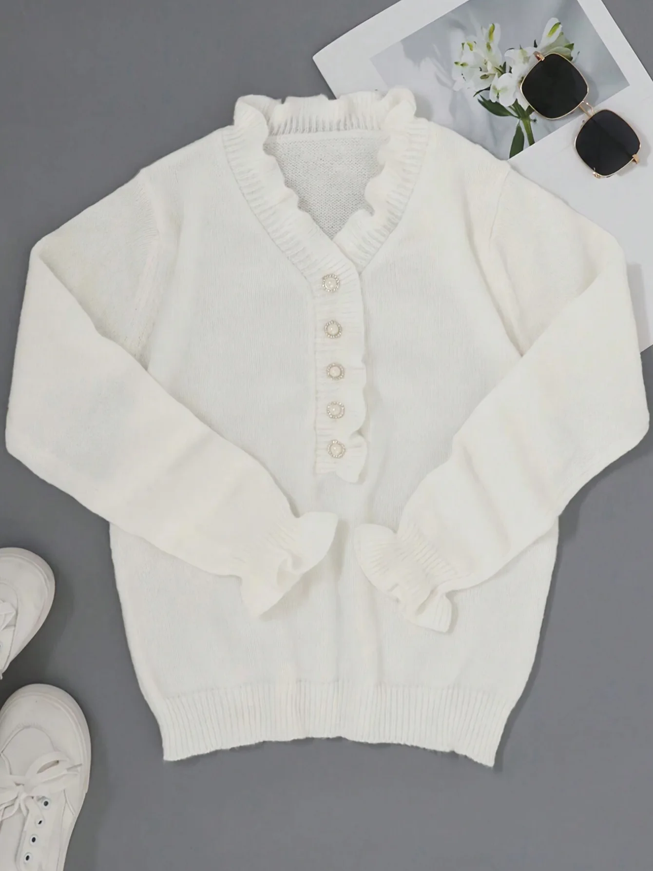 ZYHT 82024 White Blouse with Ruffled Cap Sleeves V-Neck Blouses Et Chemises Pour Femmes White Blouses for Women