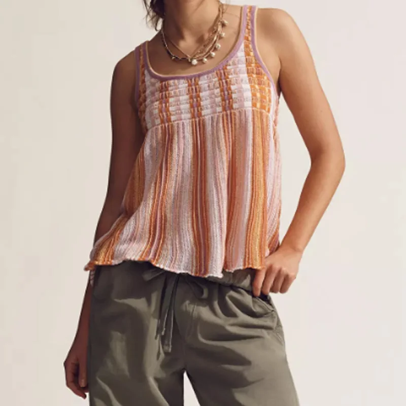 Women's 2025 Summer Sexy Striped Camisole Strapless Skinny Fit Short Length Top Seaside Beachwear