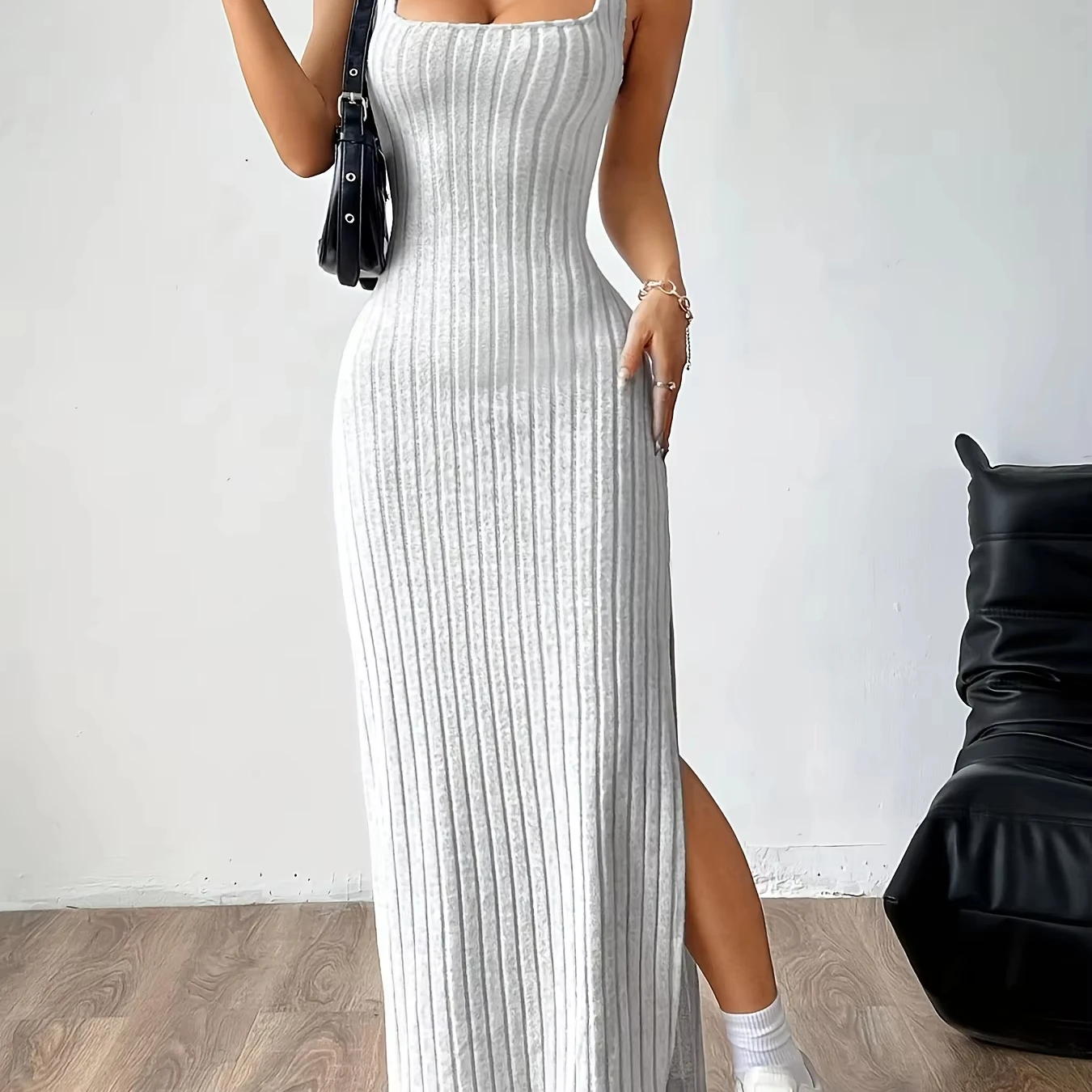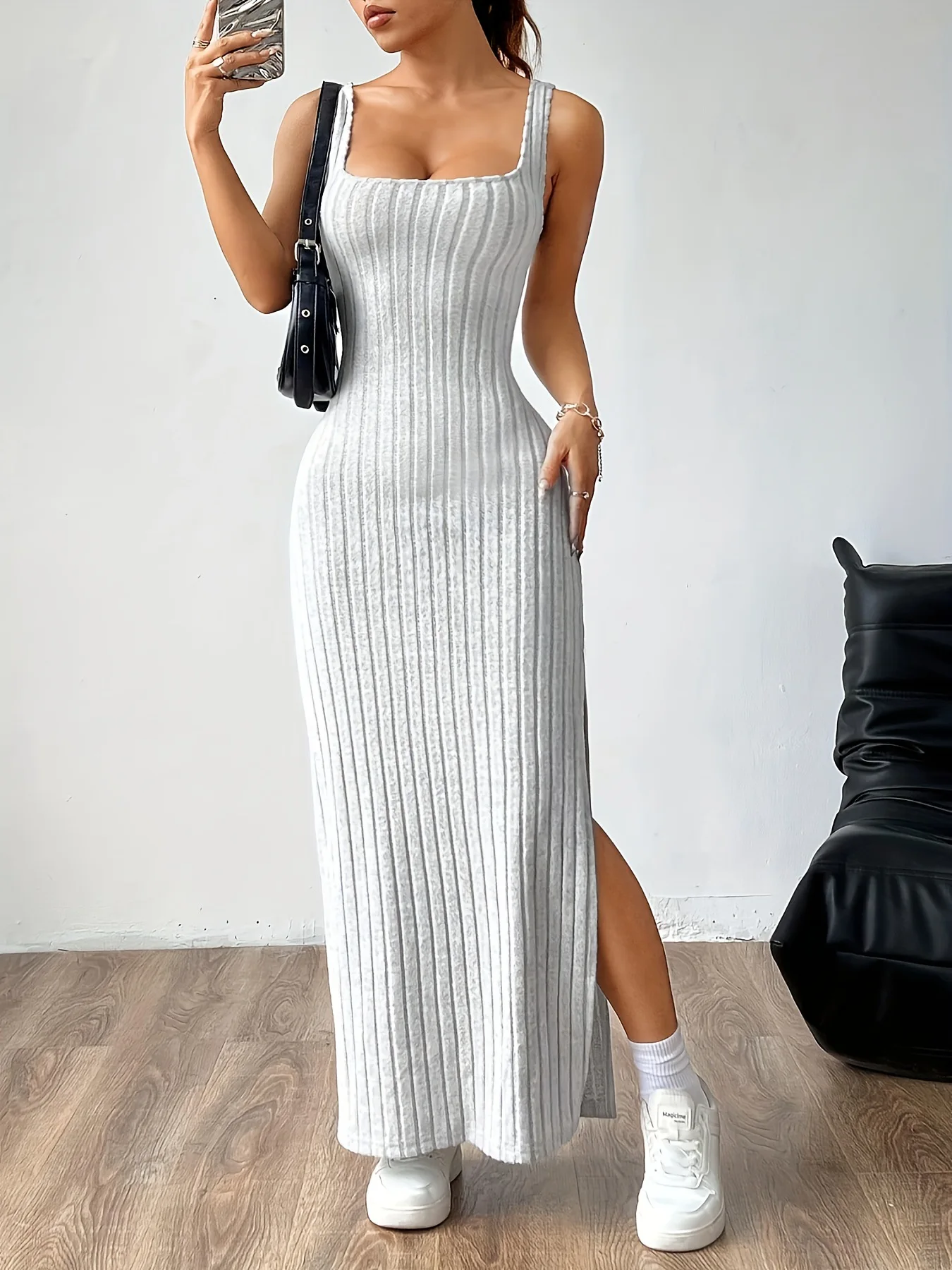 Womens Sleeveless Spaghetti Slip Maxi Dress Slim Fit Knitted Ribbed Solid Casual Autumn Simple Wholesale Clothing