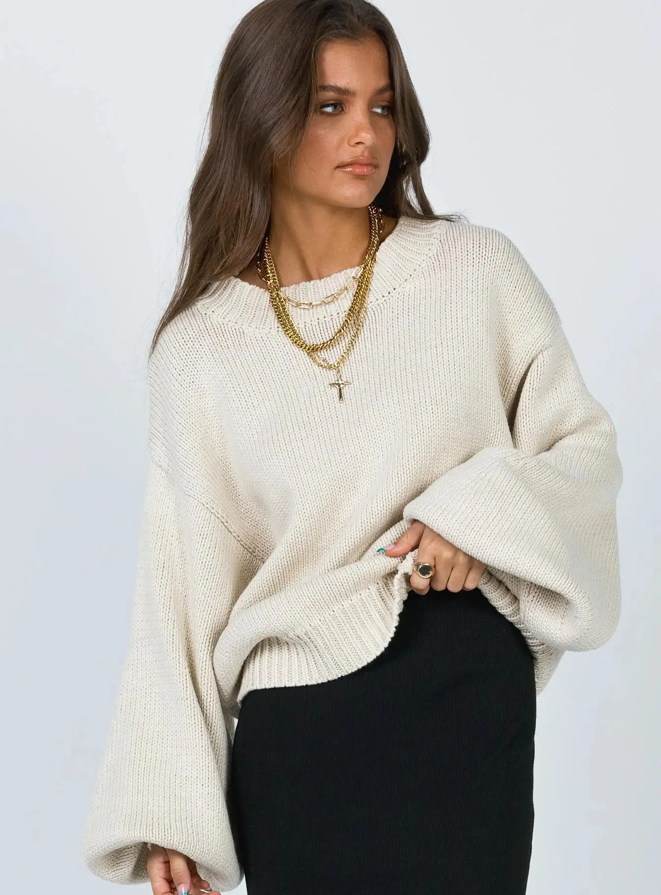 Women's Loose Retro Long Sleeve Solid Color Pullover Woven Autumn Casual Top-Wholesale Clothing Sweater