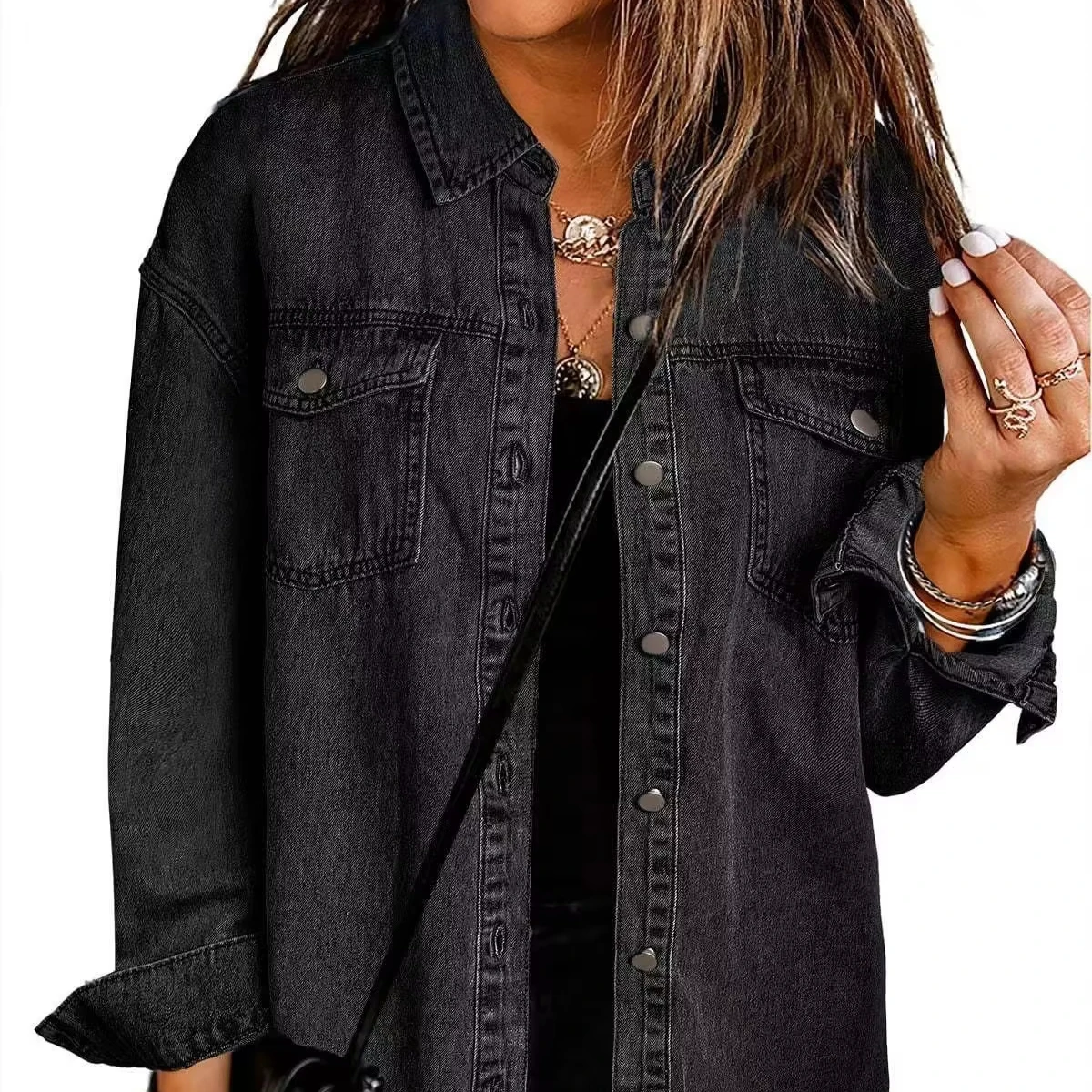 Women's Casual Washed Denim Shirt Jacket with Distressed Hem Loose Fit for Autumn Winter