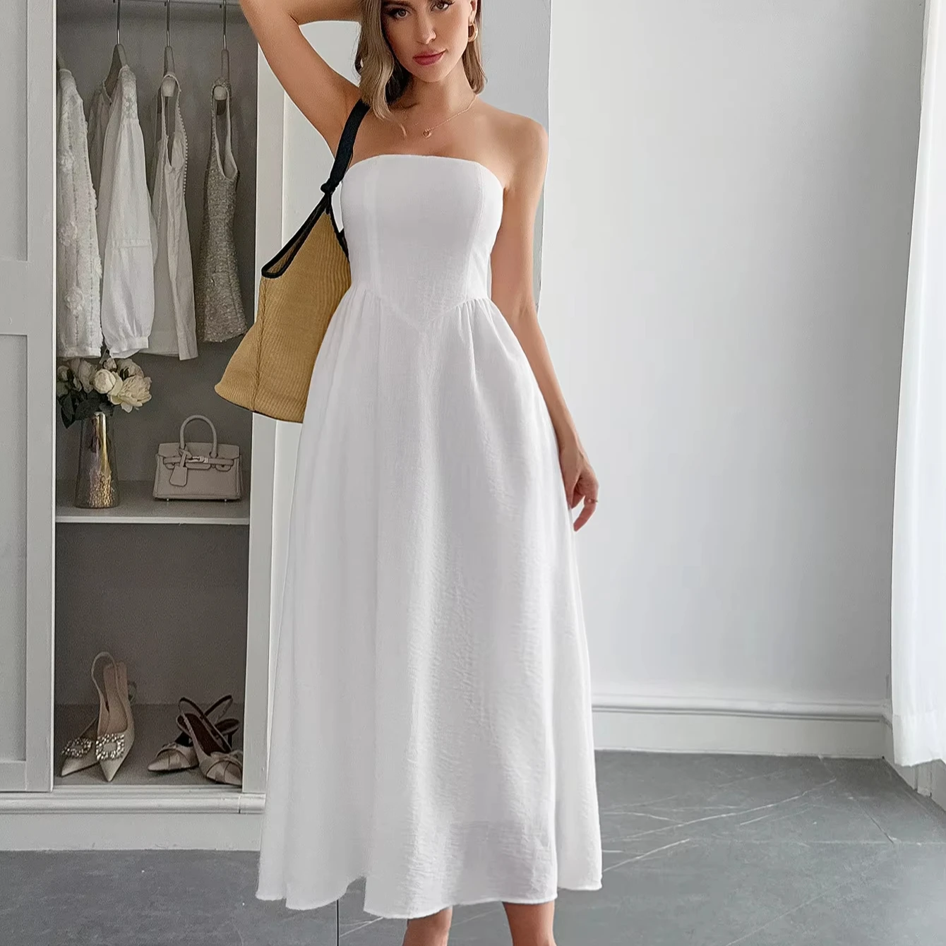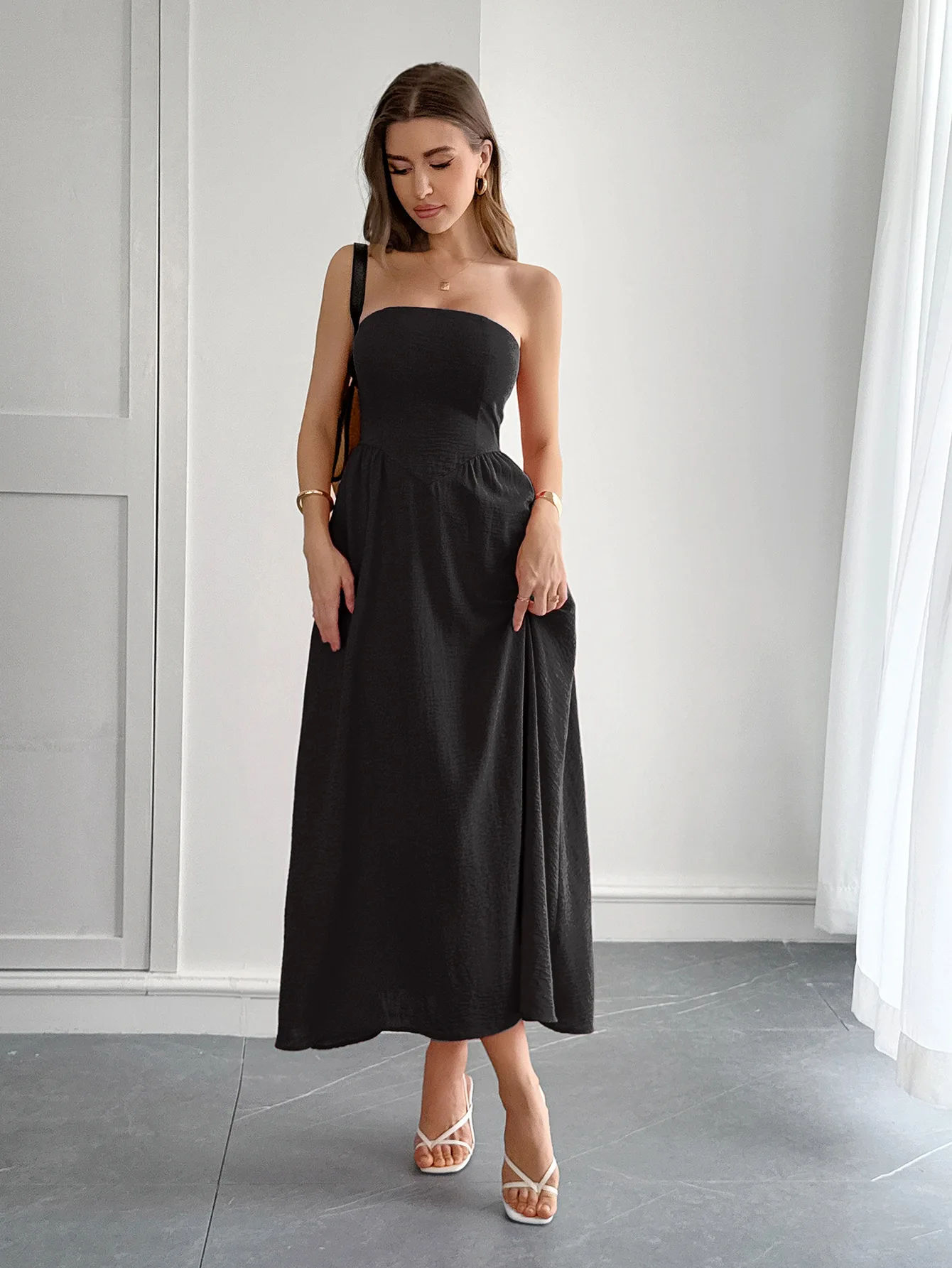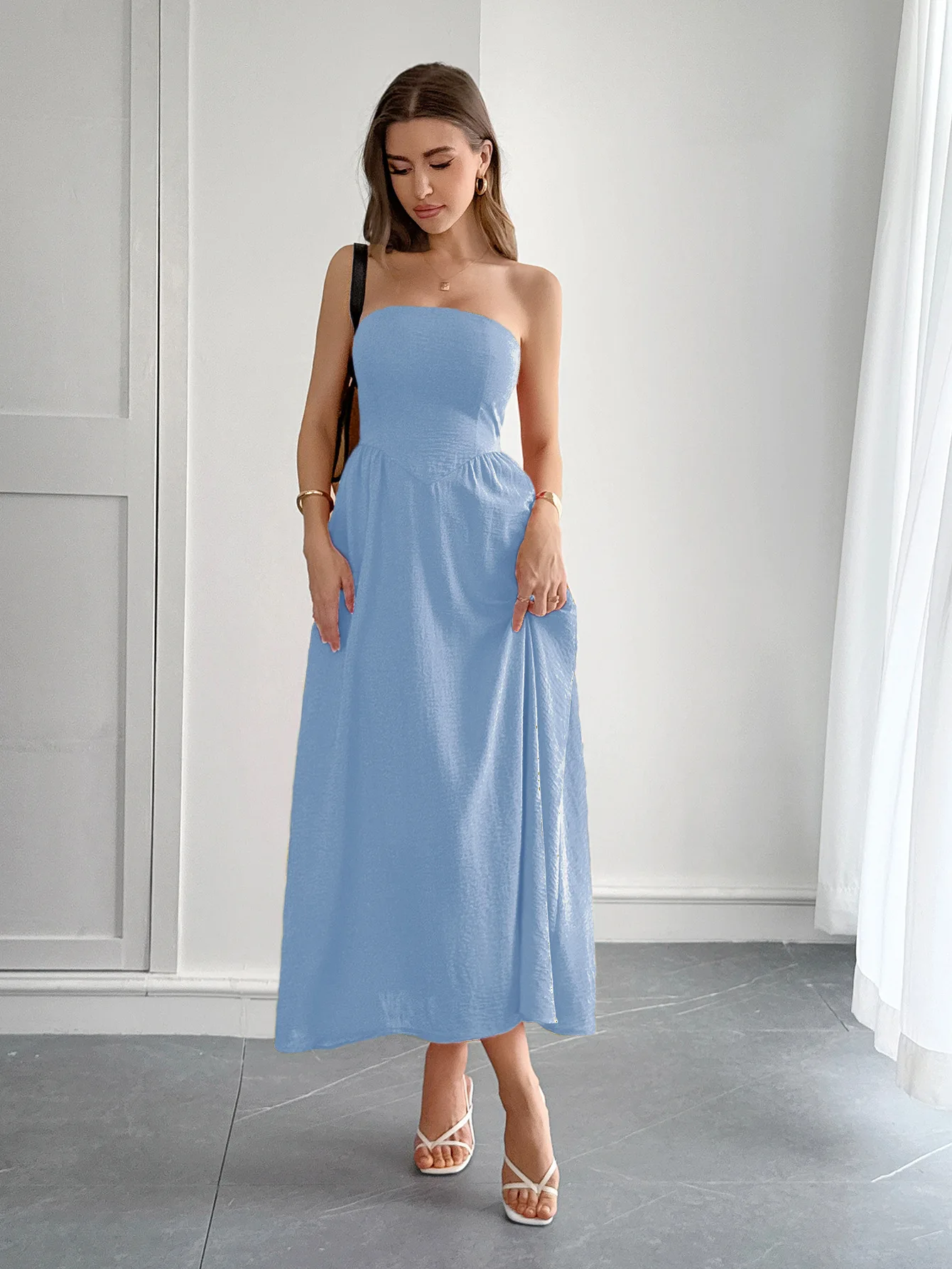 Autumn Winter Women's High Waisted Strapless Maxi Dress Resort-Style with Floor-Length A-Line Skirt