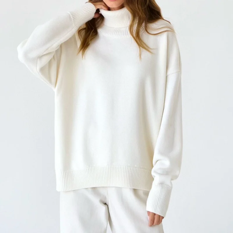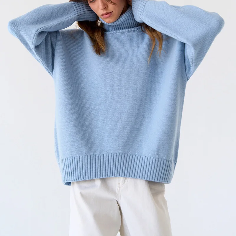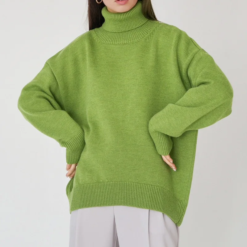 Wholesale Women Autumn Winter Pullover Sweater High Neck Long Loose Knit Solid Color Comfortable Top Bulk