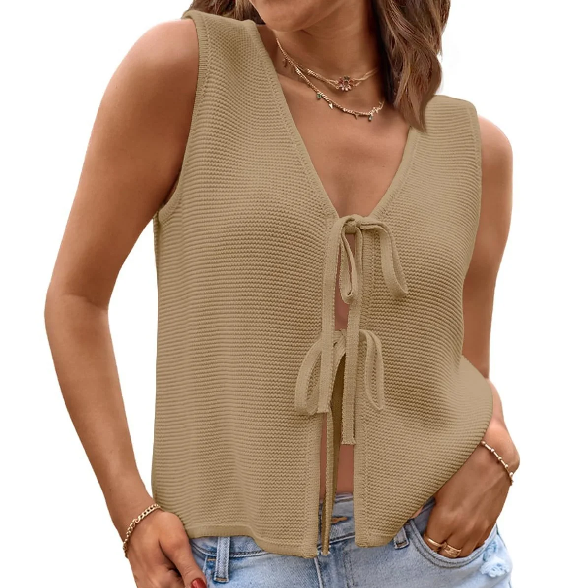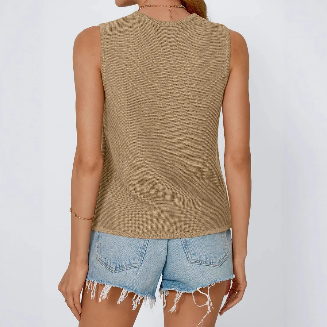 Women's Y2K Two-Piece Knitted Set Summer Sweater Vest with Above Knee Shorts Front Tie Solid Color Casual Beachwear Wholesale